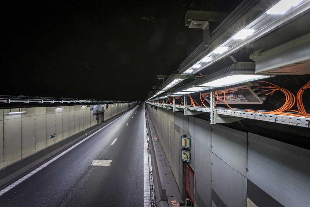 Dans le but d’améliorer l’éclairage du tunnel, l'AWV a choisi les luminaires TAG et ContiLED pour leur performance élevée et leur légèreté. Ces luminaires économiques garantissent les bons niveaux d'éclairage conjugués à une excellente uniformité (Uo > 40 % et UL > 70 %) et à un grand confort visuel. Un peu plus de 600 luminaires TAG éclairent les zones d’entrée critiques, fournissant les 300 cd/m² requis par la réglementation européenne pour réduire le contraste avec le soleil extérieur et garantir la sécurité. La zone intérieure est éclairée par 840 luminaires ContiLED, qui diffusent les 12 cd/m² de luminance nécessaires. Pendant la nuit, les niveaux sont réduits à 3 cd/m². Ces luminaires ont amélioré la visibilité dans le tunnel, garantissant ainsi une conduite plus sûre et plus confortable et une consommation d'énergie réduite.