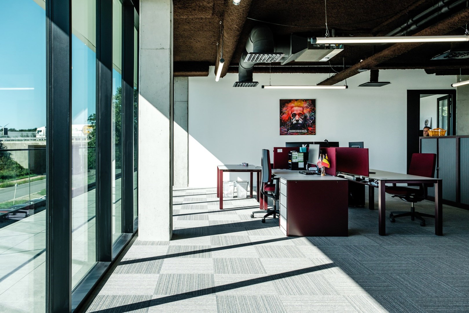 Les technologies polyvalentes contribuent également à la durabilité du projet de construction. Par exemple, un système de pompe à chaleur à trois tuyaux permet de chauffer et de refroidir simultanément. À l'extérieur, chaque mètre carré est utilisé de manière optimale, sans pour autant écarter la possibilité d'autres aménagements à l'avenir. Aujourd'hui, la toiture de l'entrepôt sert de terrasse dans le prolongement du bureau, et chaque surplomb a une fonction, allant de l'auvent solaire au balcon ou à la terrasse.