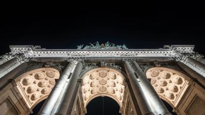 Compacts et élégants, les projecteurs SCULPFLOOD s’intègrent discrètement pour mettre en lumière ce patrimoine exceptionnel sans en altérer la vision de jour. Les concepteurs lumière souhaitaient une approche plus architecturale des éclairages, ils ont décidé d’utiliser deux types de LED. Les SCULPFLOOD, avec des LED blanc chaud, éclairent les voûtes des arcades et portes pour amener relief et profondeur. Tandis que les SCULPFLOOD, avec des LED blanc froid, illuminent les détails des statues et la pierre bleue des colonnes, sublimant ainsi ces détails architecturaux.