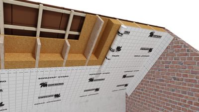 La mise en œuvre de Sopravap Hygro prend tout son sens pour les murs et les toits en pente recourant à une isolation en fibres de bois 100 % naturelle, comme Pavatex, un produit extrêmement durable et éco-responsable. Le système est également compatible avec la laine de bois, la laine de roche et la laine de verre. Cette association crée une protection performante et étanche à l’air de toute l’enveloppe du bâtiment.