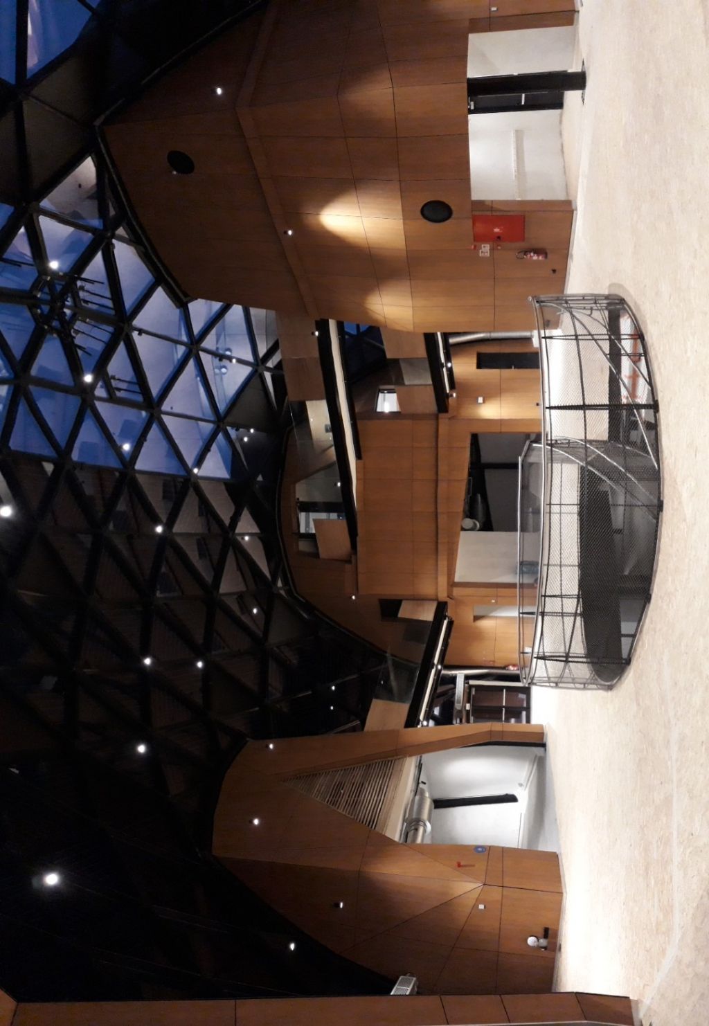 Autre souci : le pavillon présente très peu d’éléments aux formes standard. « Les aménagements intérieurs, comme les cloisons et les séparations diverses, étaient donc également hors normes et plus compliqués à gérer que dans un bâtiment classique. Ce travail, complexe, a dû être réalisé sur mesure », reconnaît Patrick Delperdange, directeur de BESIX Wallonie-Luxembourg. Vu le grand nombre de zones inclinées et de parois non perpendiculaires, les plaques Gyproc® utilisées pour les cloisons, (doubles) contre-cloisons et faux-plafonds ont, la plupart du temps, été découpées sur place, une par une, avant d’être posées.