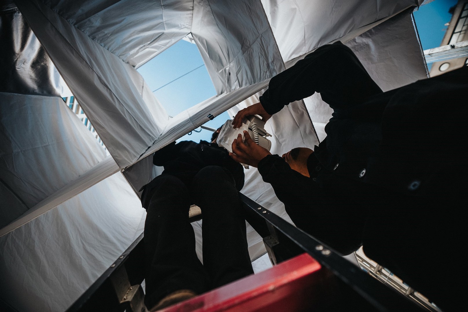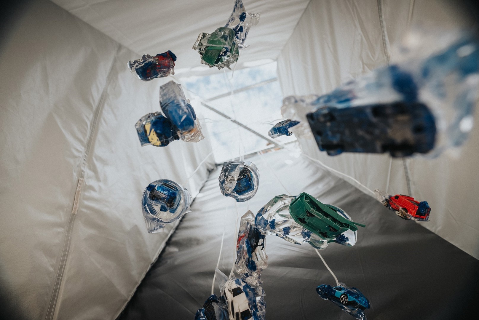 En 2022, MUCE, une organisation à but non lucratif, avait déjà fait salle comble avec un musée pop-up similaire. Celui-ci avait attiré plus de 6 000 visiteurs en un mois. MUCE a voulu voir plus grand cette fois-ci, et a donc engagé le bureau d'architectes anversois cuypers & Q architecten pour créer ce musée mobile. Le bureau, pionnier de la construction circulaire, a conçu un pavillon modulaire à partir de matériaux de récupération, comme des matériaux résiduels provenant du port d'Anvers et de vieilles tentes. Ces matériaux seront ensuite entièrement réintégrés dans le cycle.