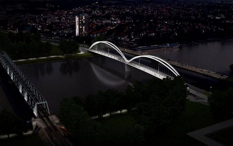 Arcadis et Marc Barani Architectes étaient chargés de la conception de l’ouvrage. La pose des tabliers du pont a nécessité de prévoir, plusieurs mois en amont, l’arrêt durant une journée du trafic sur le Rhin, fleuve pourtant le plus exploité en Europe pour la circulation fluviale de marchandises.