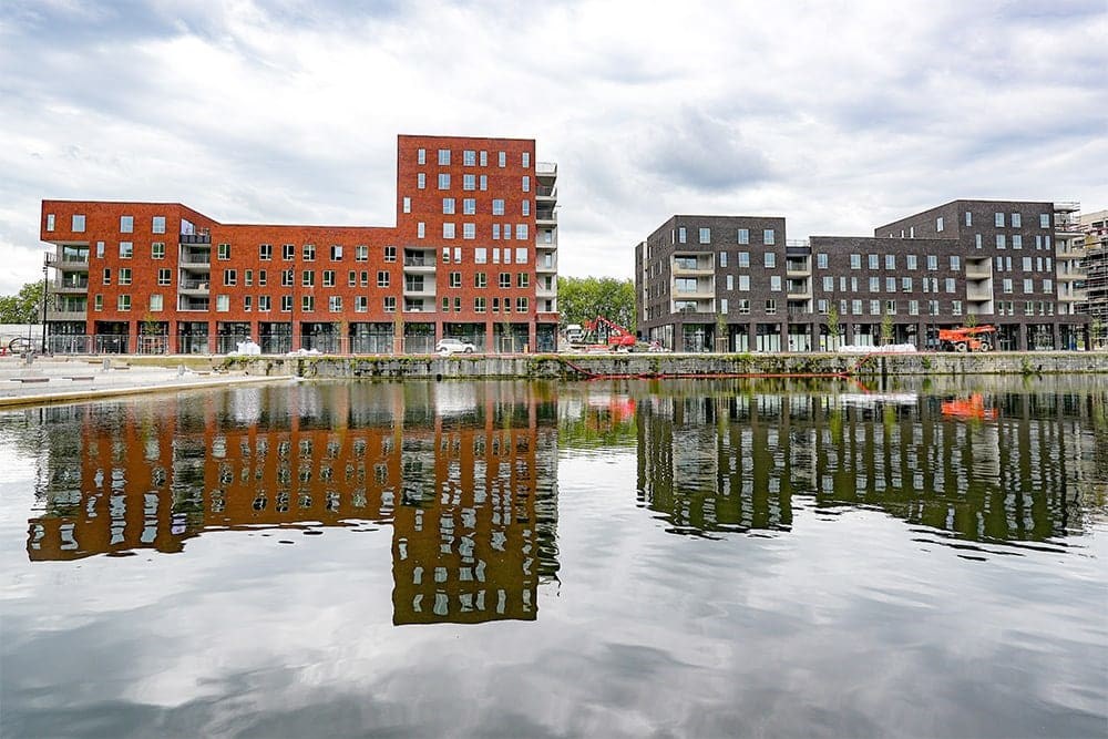 Situés en grande partie sur une presqu’île entre la Meuse et la Darse, les 25 ha du site sont remarquablement isolés de la frénésie urbaine. Pionniers attirés par le désir de vivre au calme tout en étant très proches du centre-ville, les tout premiers habitants ont investi les lieux en février. Et plus particulièrement le premier immeuble de l’ensemble « Quai I » qui, avec les ensembles « Marina » et « Parc », constitue le premier îlot de bâtiments résidentiels, complété par un immeuble de bureaux qui va accueillir le siège d’Ethias. Avec un total d’environ 1325 unités prévu à terme, Rives Ardentes fait en effet la part belle au logement, avec une variété de typologies allant des maisons mitoyennes (Parc) aux appartements de toutes tailles. Les typologies sont volontairement mélangées au sein d’un même bâtiment pour éviter la monotonie et favoriser la mixité sociale. Services, commerces de proximité et équipements collectifs complèteront l’offre au fur et à mesure de l’avancement du projet. Des tours de grande hauteur sont prévues pour les prochaines phases de construction, avec des permis actuellement en cours de traitement. Enfin, l’ancienne école de l’Equerre et le Grand Palais devraient recevoir une nouvelle affectation, l’une en tant que crèche et maison de quartier, l’autre notamment en marché couvert de produits locaux bio.