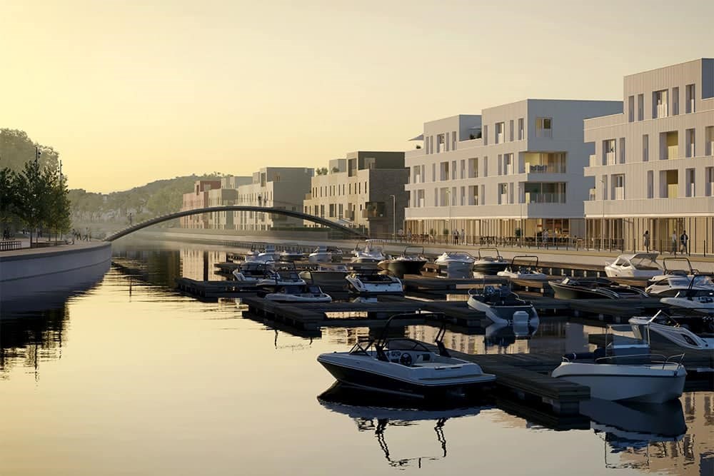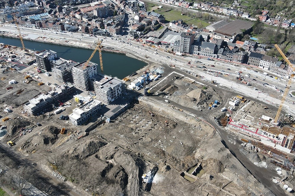 Issu d’un appel à projet de la Ville de Liège suite à la non attribution de l’organisation de l’Expo universelle 2017 sur le site de Coronmeuse à Liège, le projet Rives Ardentes est une initiative ambitieuse visant à transformer cette ancienne zone industrielle d’environ 25 ha en un écoquartier dynamique et moderne. Avec une vision axée sur la durabilité et la mobilité douce, le projet prévoit la construction, sur deux périodes de 15 ans, de logements, bureaux, commerces et équipements collectifs. Développé par la société de promotion Neo Legia et construit par les entreprises CIT Blaton, Jan De Nul et Franki réunies en sociétés momentanées Focus sur la première phase de travaux, essentiellement résidentielle, en cours depuis fin 2021 de part et d’autre de la Darse. Celle-ci devrait s’achever fin 2025.
