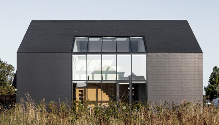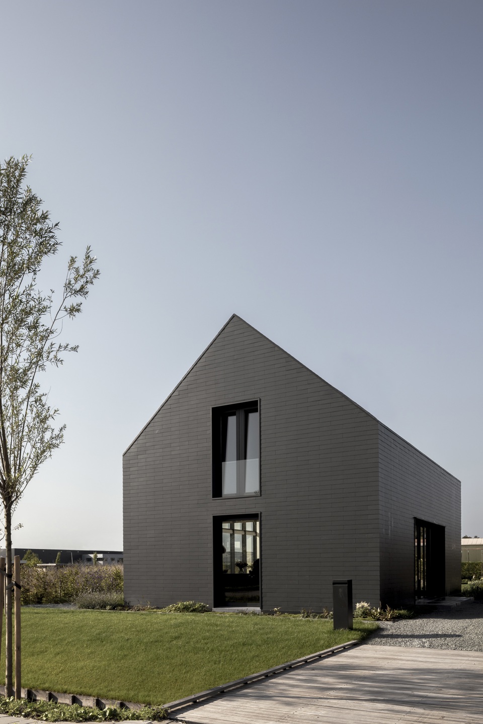 La maison est construite sur un terrain de 750 m² dans le Zuidplaspolder. Le cabinet d'architectes studio AAAN, de Rotterdam, fut chargé de lui donner un aspect moderne qui s'intègre parfaitement à l’environnement rural. « Nous avons donné à la maison une forme archétypique sobre en évitant autant que possible tout ajout ou interruption du volume. Ce n'est qu'à la hauteur des espaces de vie – c'est-à-dire du côté est et sud – que nous avons prévu quelques grandes ouvertures dans la façade pour créer un lien visuel fort avec le jardin », explique Rik de Ruiter, fondateur-propriétaire du studio AAAN.