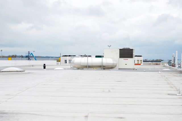 De plus, le client a opté pour des condenseurs à ventilateur axial et diffuseurs Axitop, qui atténuent le bruit et améliorent l'efficience. Avec pour résultat une réduction du niveau sonore allant jusqu’à 7 dB(A). Les diffuseurs contribuent également à réduire la consommation d’énergie parce que le flux d’air est dirigé de manière plus efficace au-dessus des batteries de condenseur. Un rideau d’air LSA Effect a été installé au-dessus de l’entrée de la salle d’exposition pour améliorer le confort des visiteurs. De plus, le rideau d’air fait barrage à l’infiltration d’air froid pendant l’hiver. En période estivale, le rideau d’air peut également servir pour éviter l’entrée dans la salle d’exposition d’air plus chaud venant de l’extérieur.