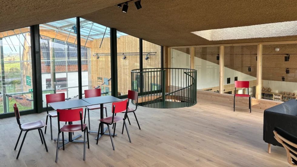 L'accent mis par EA+ sur la construction circulaire a également conduit à l'utilisation de divers autres matériaux de construction bioécologiques, en plus du bois. Par exemple, les toits et les murs de la grange rénovée ont été isolés avec de la cellulose et les sols avec des granulés de mousse de verre.