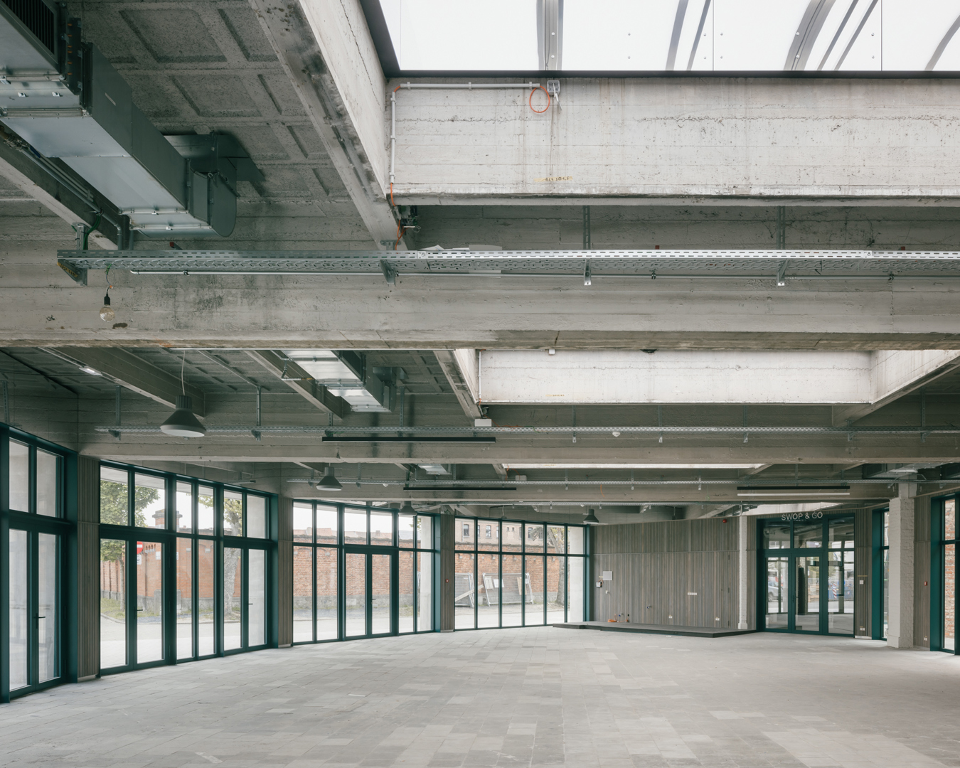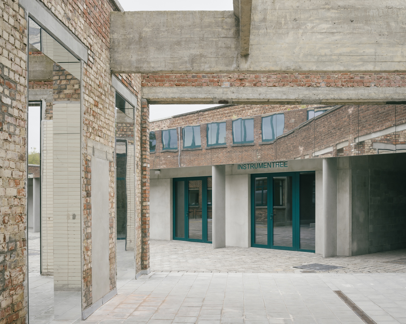 Tout d'abord, le bureau d'architecture a insisté sur la préservation et le réemploi, en conservant encore plus que ce que le maître d'ouvrage souhaitait à l'origine. Le sol de la halle centrale, par exemple, est celui de l'ancien hangar où étaient garés les camions de pompiers. Des échelles, des poulies et des grilles ont également été réutilisées. Plus ludique, les lettres b, a et r au-dessus du bar sont un autre exemple de réemploi. Elles proviennent des lettres qui formaient le mot "brandweer" sur la façade de la caserne.