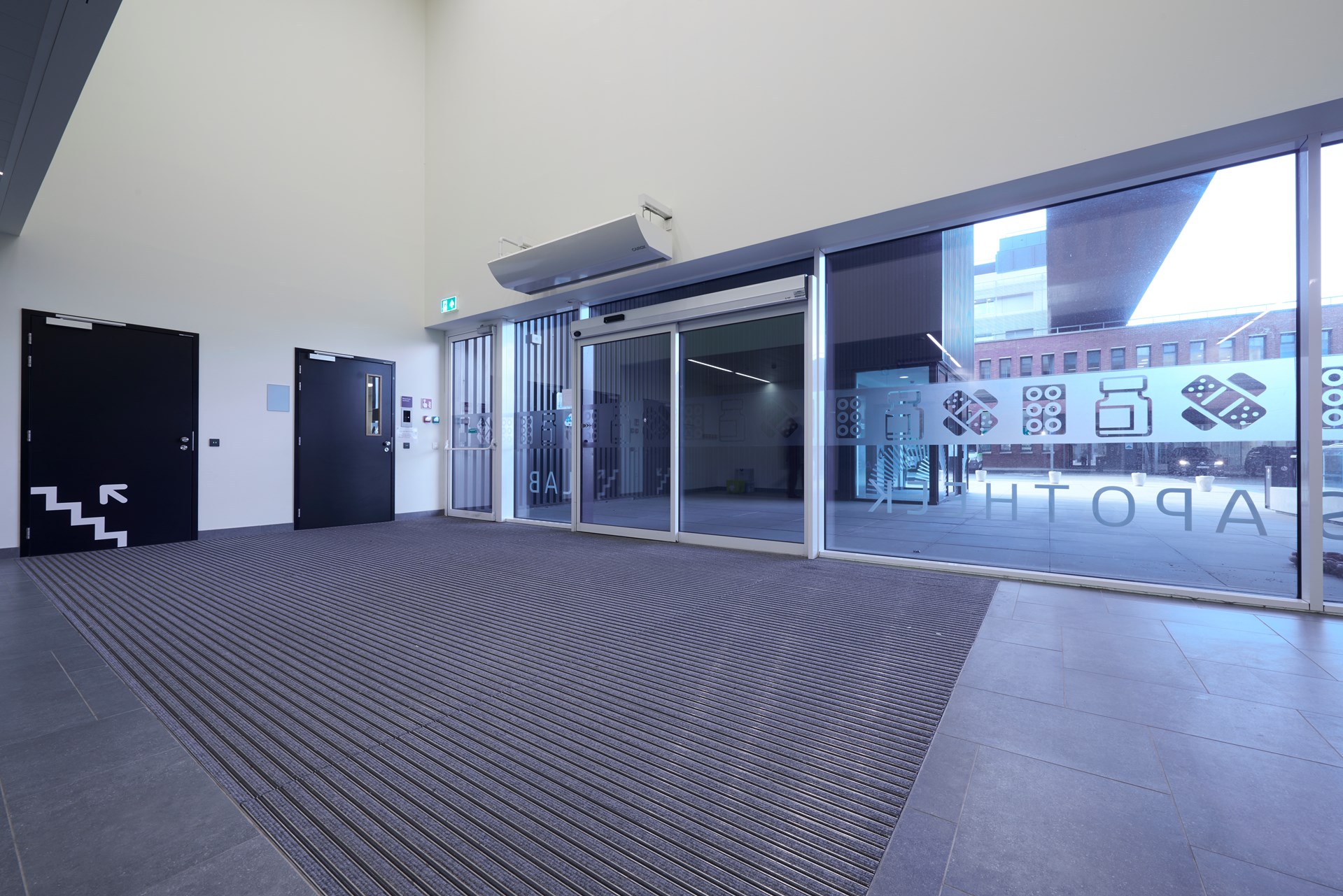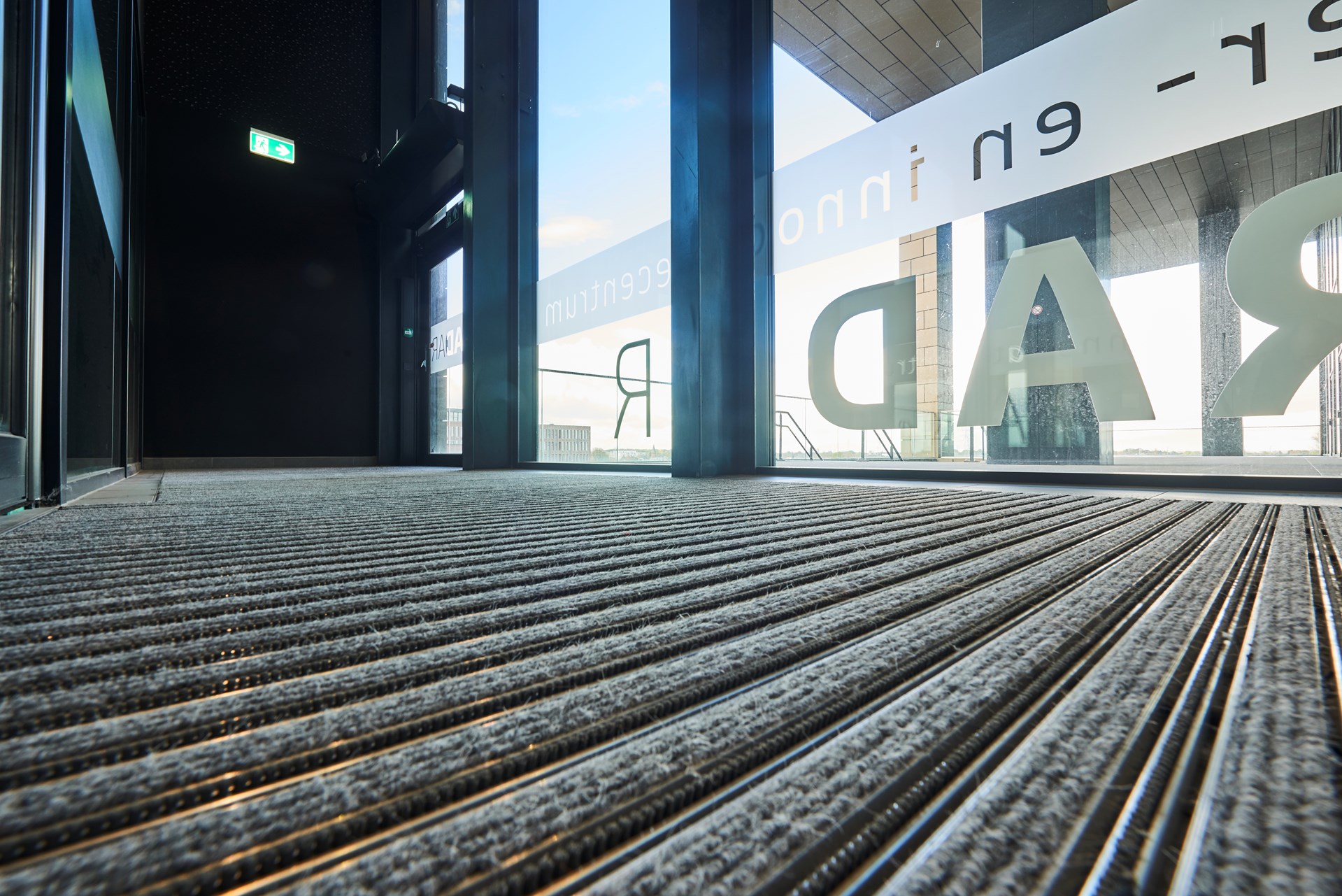 Ce tapis présente une seule rangée de brosses, pour une plus grande stabilité que le système à 3 rangées. La couleur grise et l'habillage visuel contribuent en outre au sentiment d'accueil chaleureux, une étude ayant révélé que cela entraîne une réduction du stress chez les patients.