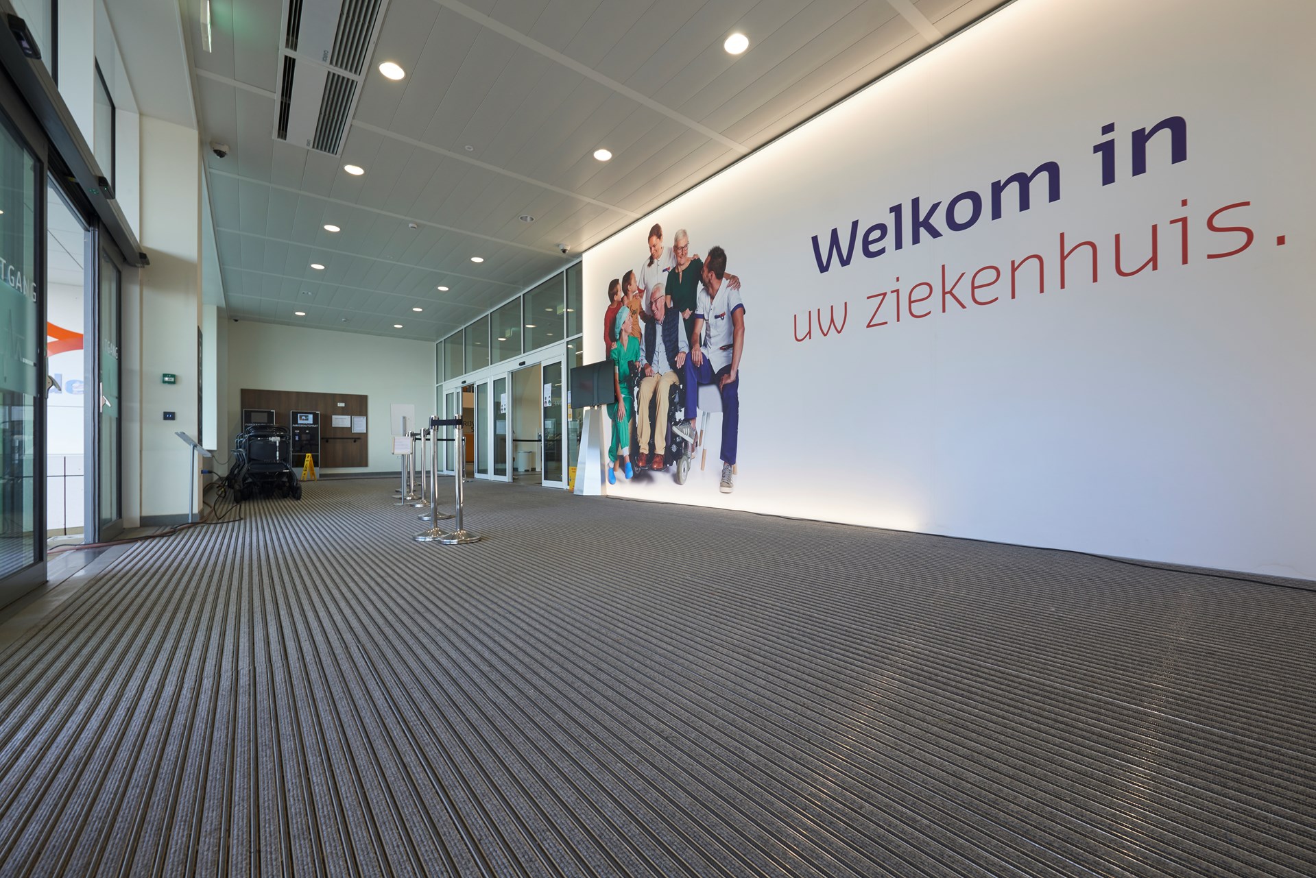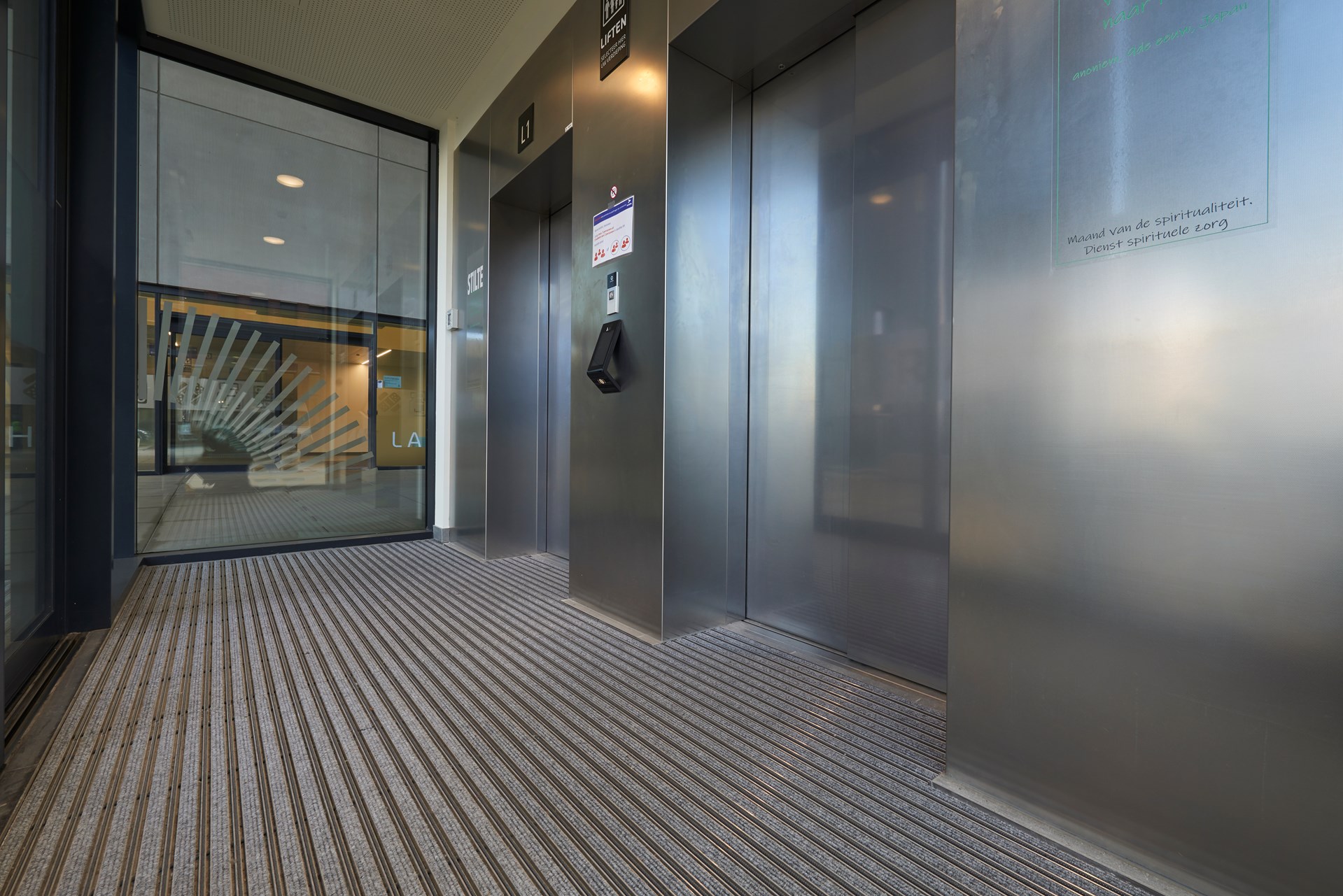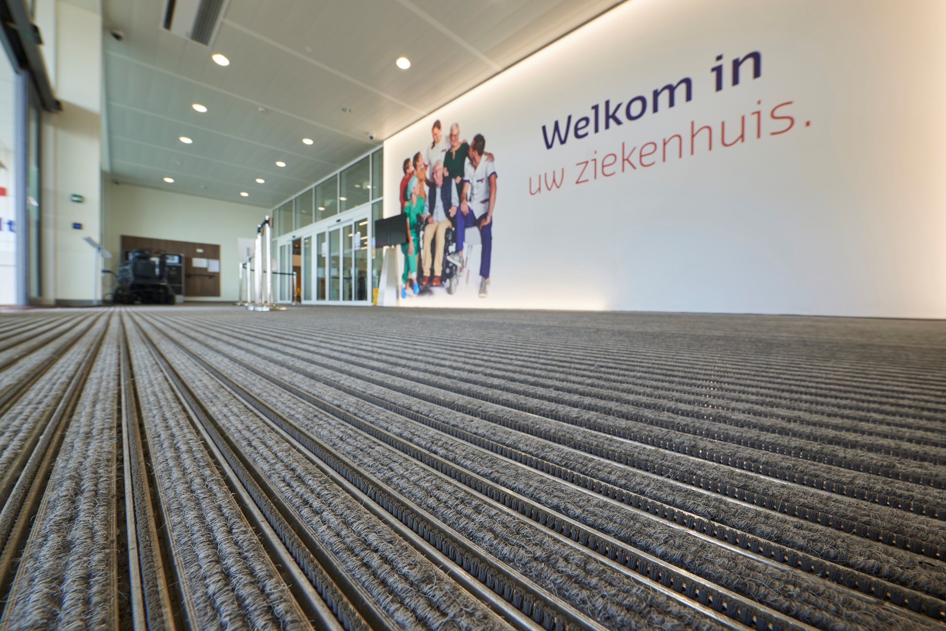 Le projet de nouvelle construction de l'AZ Delta à Rumbeke, près de Roulers, allie soins et architecture moderne. Ce grand hôpital a une superficie totale de 116 000 m2 et possède 700 lits. Aux entrées, les visiteurs sont accueillis chaleureusement. Afin de rendre le passage facilement accessible aux personnes en fauteuil roulant et qui ont des difficultés à marcher, il a été décidé, en concertation avec la coentreprise Wycor & Jansen Building et VK Architects & Engineers, d'opter pour le tapis d'entrée stable emco Diplomate Original.