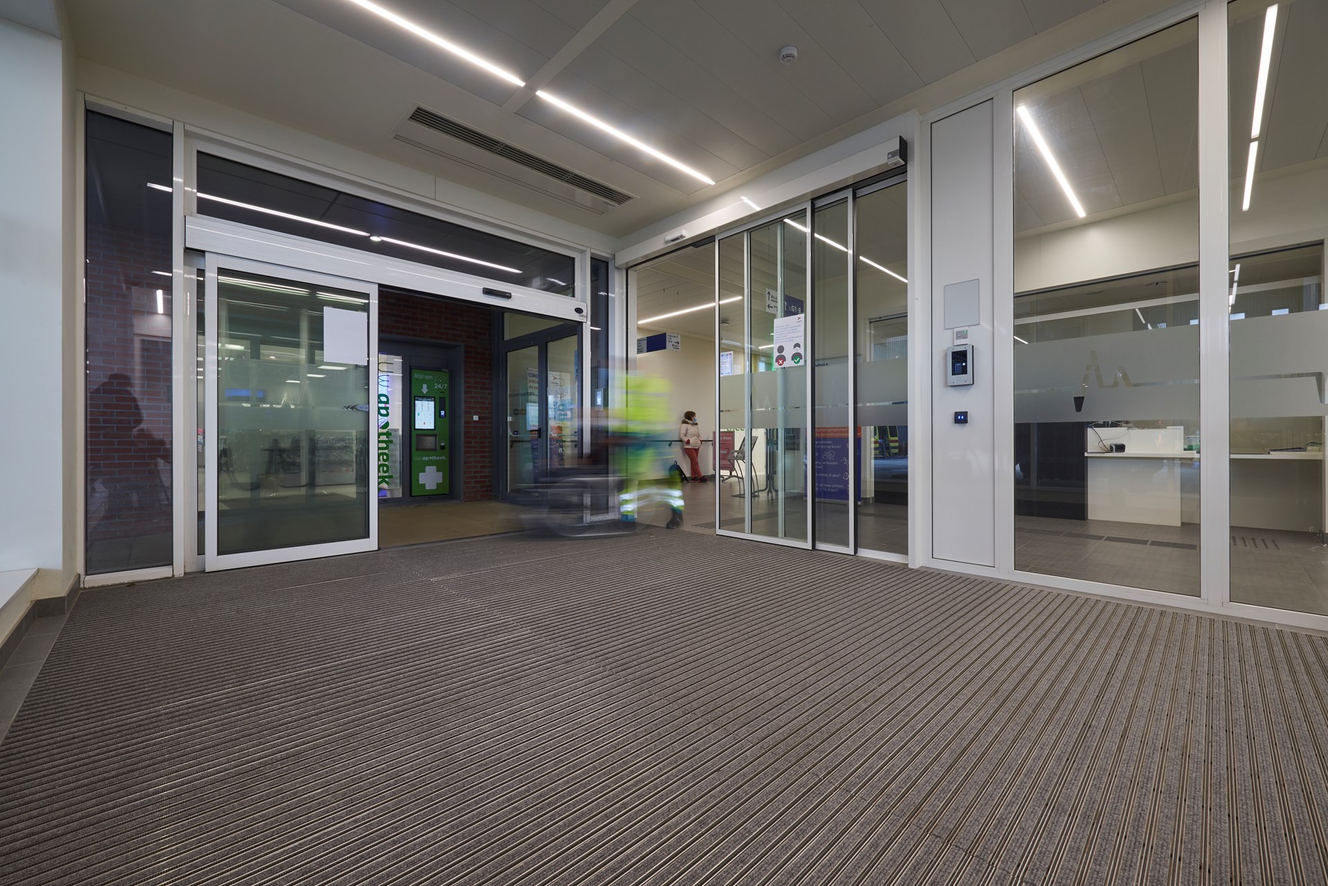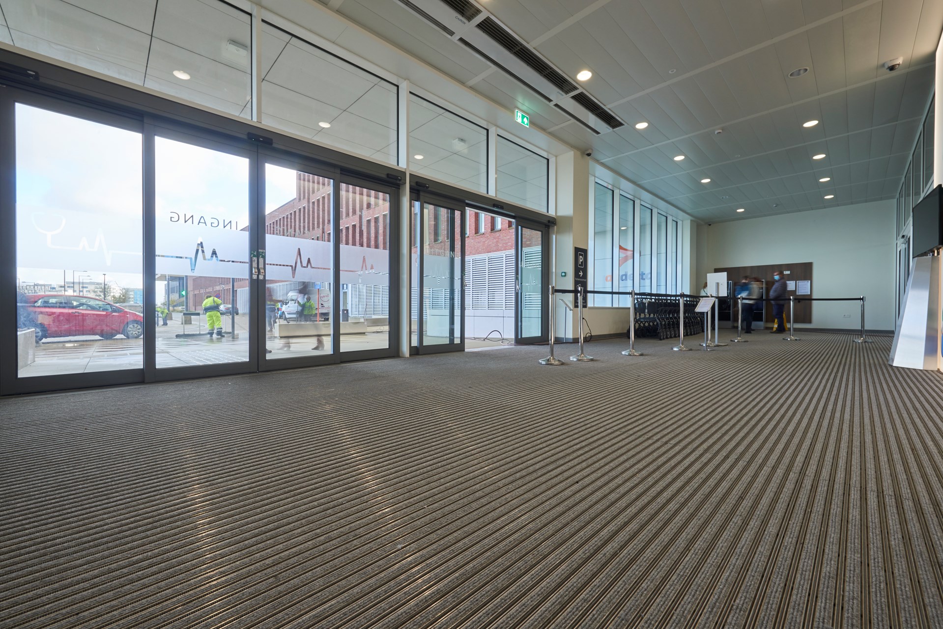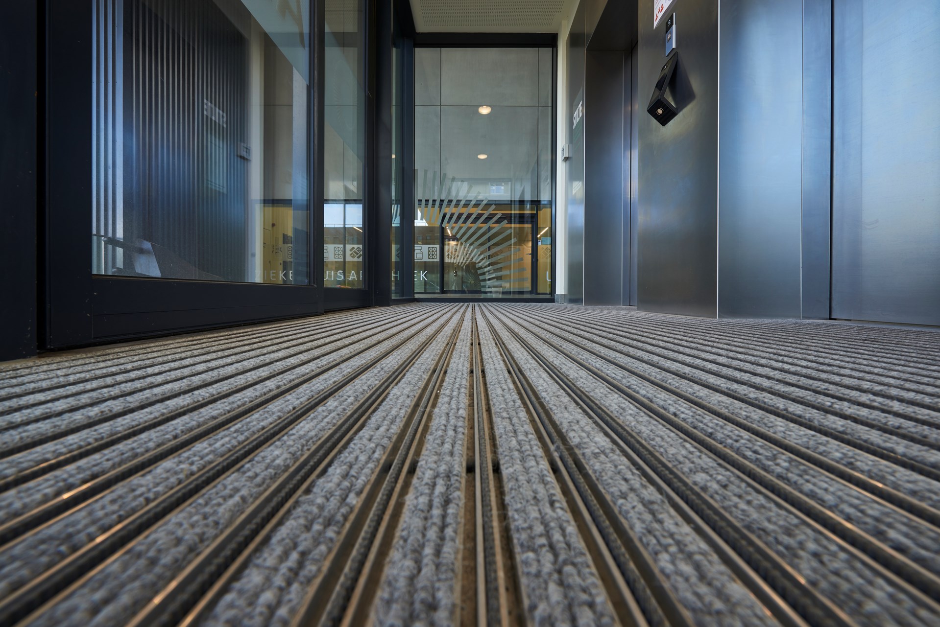 Le projet de nouvelle construction de l'AZ Delta à Rumbeke, près de Roulers, allie soins et architecture moderne. Ce grand hôpital a une superficie totale de 116 000 m2 et possède 700 lits. Aux entrées, les visiteurs sont accueillis chaleureusement. Afin de rendre le passage facilement accessible aux personnes en fauteuil roulant et qui ont des difficultés à marcher, il a été décidé, en concertation avec la coentreprise Wycor & Jansen Building et VK Architects & Engineers, d'opter pour le tapis d'entrée stable emco Diplomate Original.