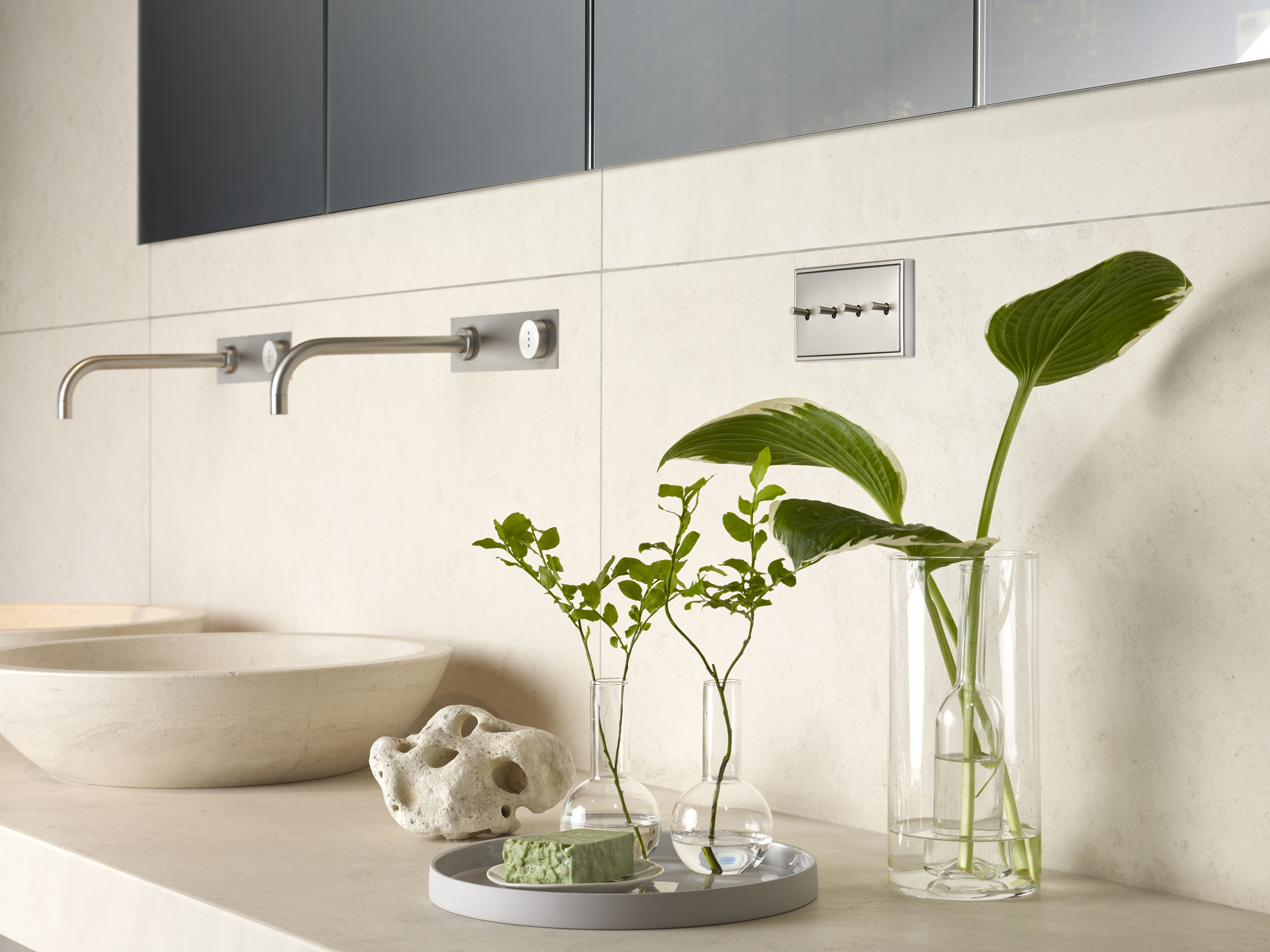 Que l'on cherche à créer un effet rafraîchissant ou plutôt chaleureux, les matériaux jouent un rôle clé dans la salle de bains. Les métaux de qualité, tels que l'aluminium ou l'acier inoxydable, offrent une expérience tactile agréable. Depuis des décennies, JUNG a démontré son savoir-faire unique dans la maîtrise des métaux. Ses produits uniques sont en outre caractérisés par une fabrication artisanale précise.