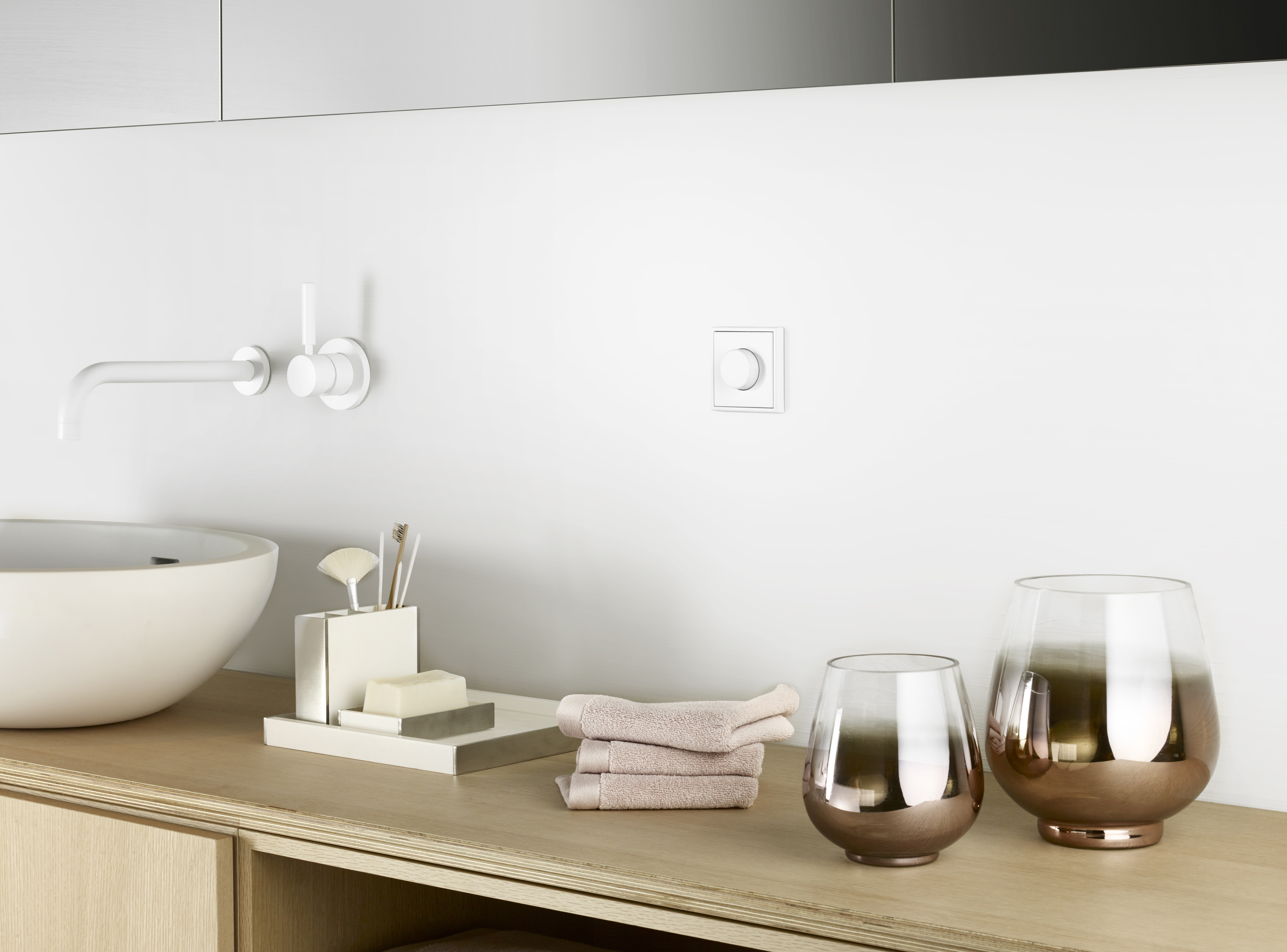 D’espace minimaliste et pratique, notre salle de bains a évolué pour se transformer en un lieu dédié au bien-être et à la détente. Dans un monde mouvementé et peu propice au lâcher-prise, cet espace, jusqu’ici pensé essentiellement dans une approche fonctionnelle, se doit aujourd’hui d’être confortable et harmonisant. Avec son système radio intégré, ses designs tendances et ses matériaux raffinés, JUNG crée du confort dans la salle de bains tout en favorisant la sensation de bien-être.