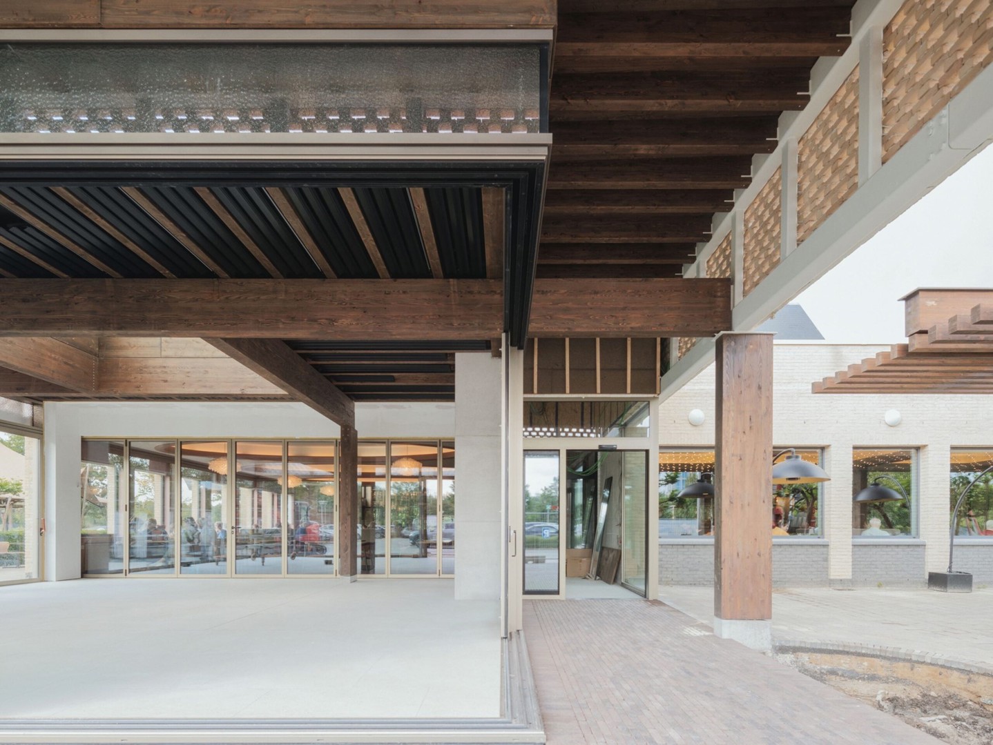 L'accent mis sur la construction circulaire et les techniques innovantes n'a pas empêché LAVA architecten de concevoir un bâtiment qui respecte l'histoire du café d'origine. Par exemple, la corniche des deux pavillons, soutenue par une structure en quart de tour, est faite de briques disposées en claustra, en clin d'œil à l'architecture du projet de Paul van Aerschot.