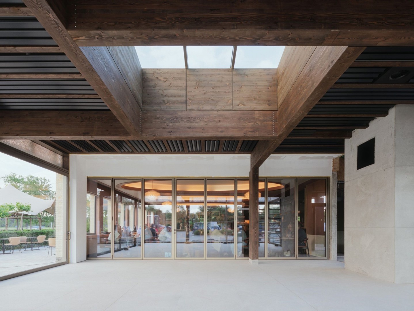 En raison du besoin urgent de plus d'espace et d'un accès plus facile au café, LAVA architecten a été autorisé à prolonger ces trois bras par des pavillons séparés. Deux d'entre eux sont maintenant terminés. La troisième extension suivra plus tard.