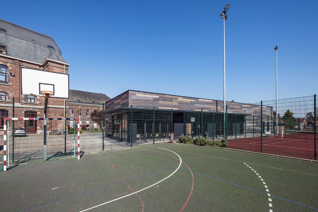 « La demande de la commune concernait la reconstruction de ce dernier bâtiment », explique Michel Meyrant, l’architecte en charge de la conception du projet. « Le choix a été de créer un bâtiment contemporain bien intégré dans ce cadre rural, cadre qui avait cependant certaines particularités puisque les deux bâtiments principaux avaient été construits avec des matériaux (briques et tuiles) anciens et un autre, plus récent, était fait de béton et de tôles ondulées. »