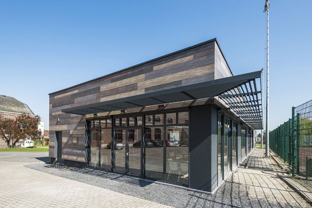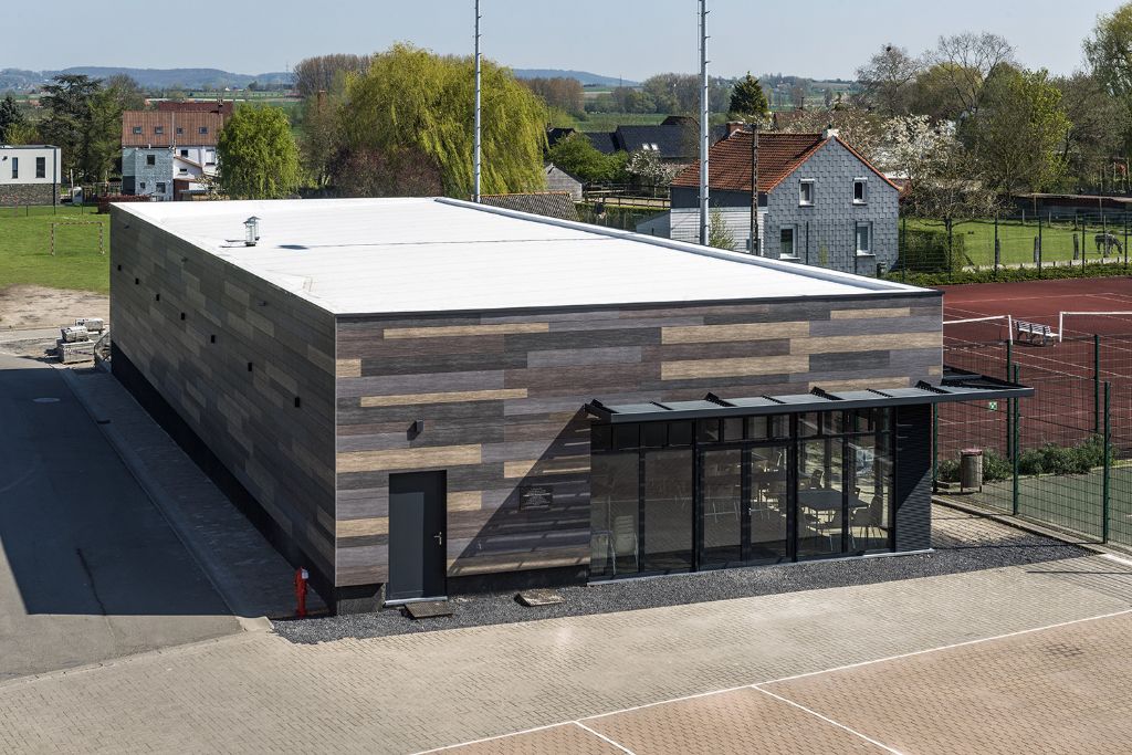 Dans la commune de Celles-en-Hainaut, depuis février 2019, on peut faire du sport, de la danse ou du yoga dans un tout nouveau hall sportif. Un hall qui se démarque nettement de ce qui se fait d’habitude dans le domaine. La principale raison de ce caractère unique ? La façade du bâtiment et les panneaux Rockpanel® Woods qui la recouvrent et émerveillent par leur variété, tant dans leurs dimensions que dans leurs couleurs.