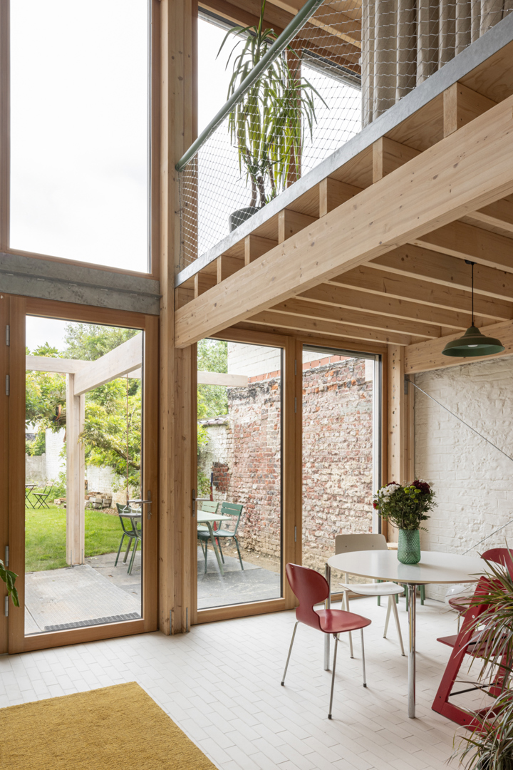 De plus, Hé! Architectuur a conçu l'extension et l'ajout selon le principe « gros oeuvre fait la finition », ce qui a permis d'économiser sur les matériaux de parachèvement.