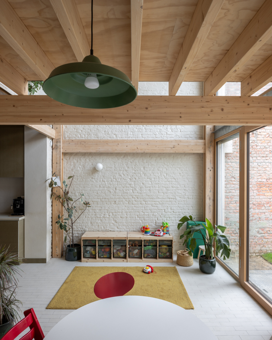 Les propriétaires, Frederik et Els, tenaient à ce que la rénovation, qui visait notamment à rendre leur maison en briques plus lumineuse et plus pratique, soit aussi écologique que possible et maintienne le plus d'éléments caractéristiques possible.
