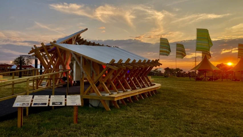 L'année passée, Circubuild vous présentait déjà la première version du pavilion Hayes du mythique festival anglais Glastonbury. Ce pavillon est revenu pour la deuxième année consécutive au plus grand festival de musique en plein air du monde, dans le cadre de sa réflexion sur l'amélioration de la durabilité des infrastructures événementielles temporaires. Après l'accent mis l'année dernière sur les panneaux isolants préfabriqués en mycélium, la nouvelle mouture du pavillon Hayes met en avant un bioplastique compostable fabriqué à partir d'algues marines.