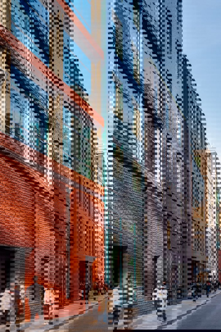 Plus tard cette année, Fletcher Priest Architects devrait emménager dans ses nouveaux locaux situés au rez-de-chaussée, en mezzanine et au premier étage du bâtiment, situé au 100 Fetter Lane. Cette tour à usage mixte comprend également un café et un pub au rez-de-chaussée, des terrasses extérieures reliées aux bureaux sur six étages et un jardin qui ajoute deux chemins piétonniers à travers le site.