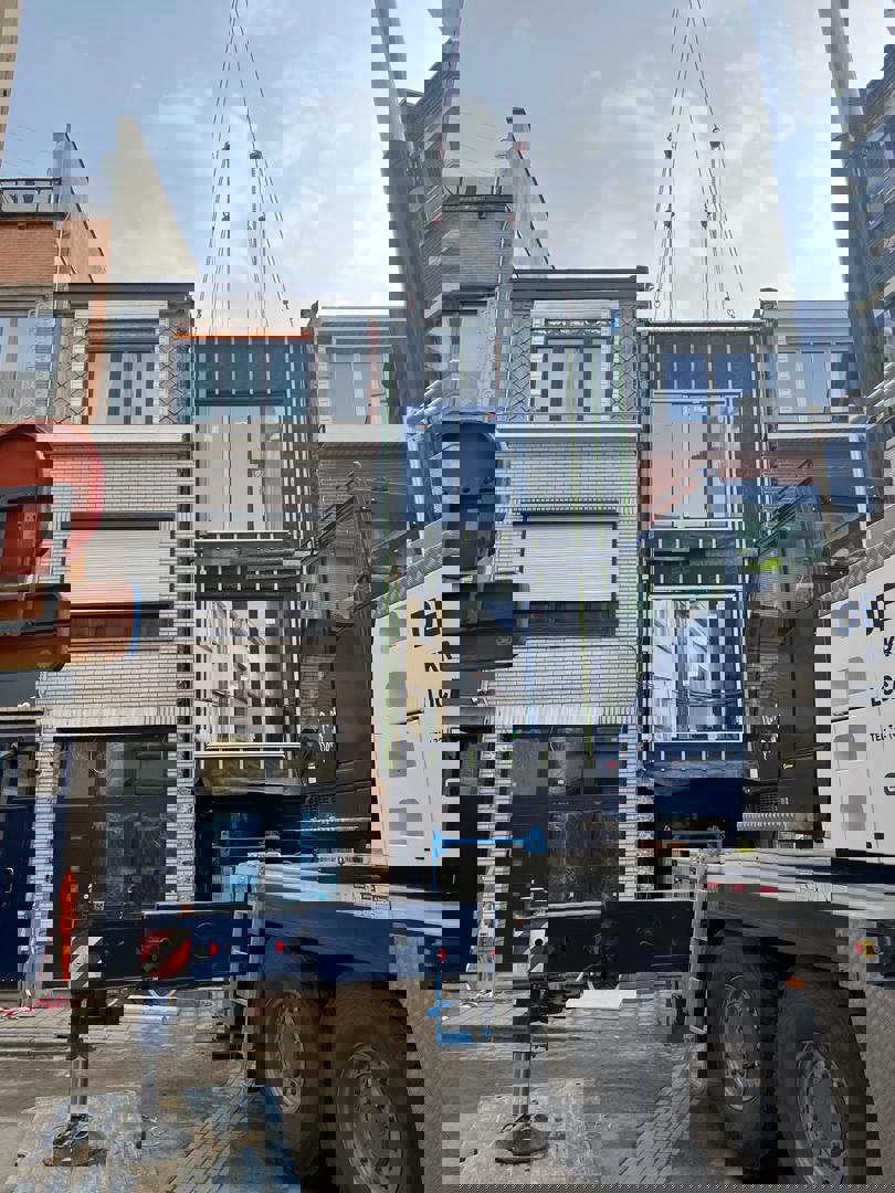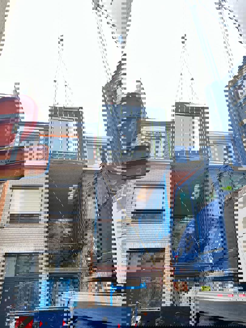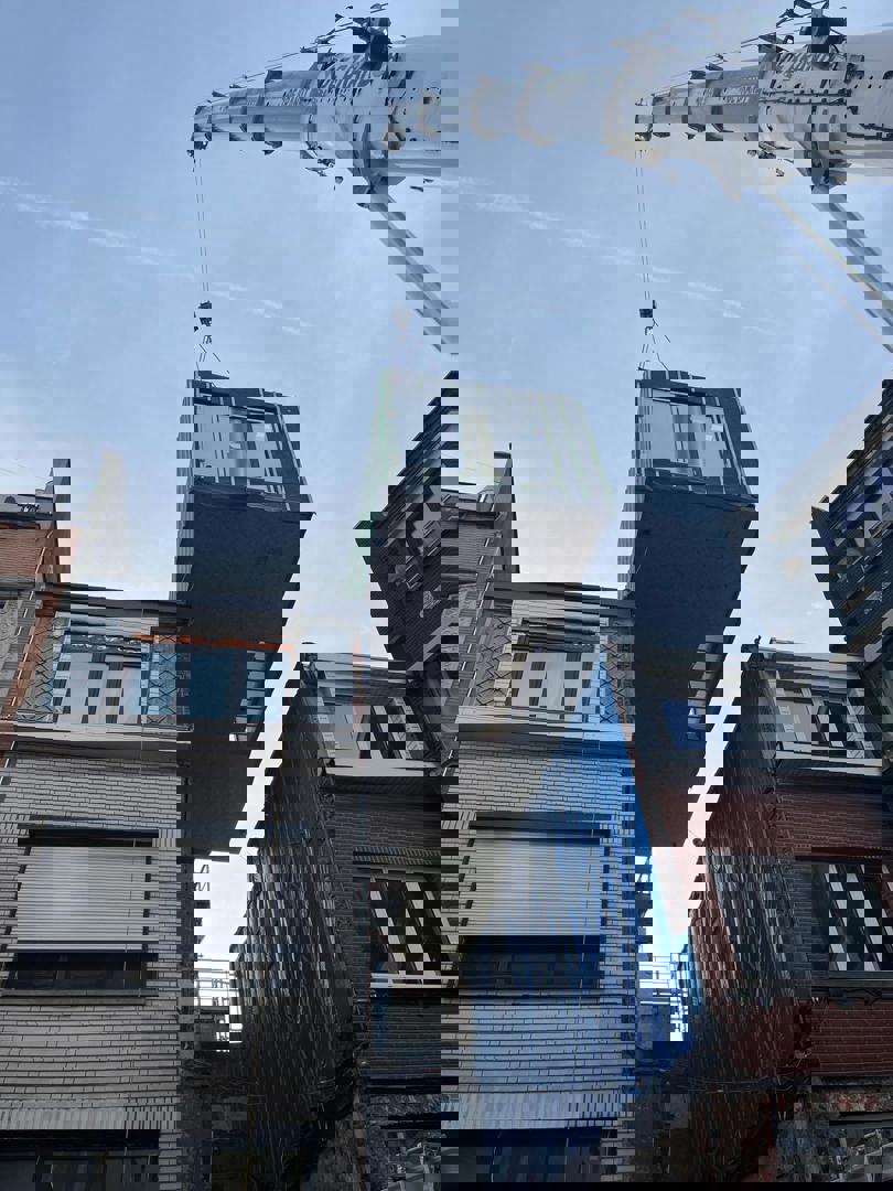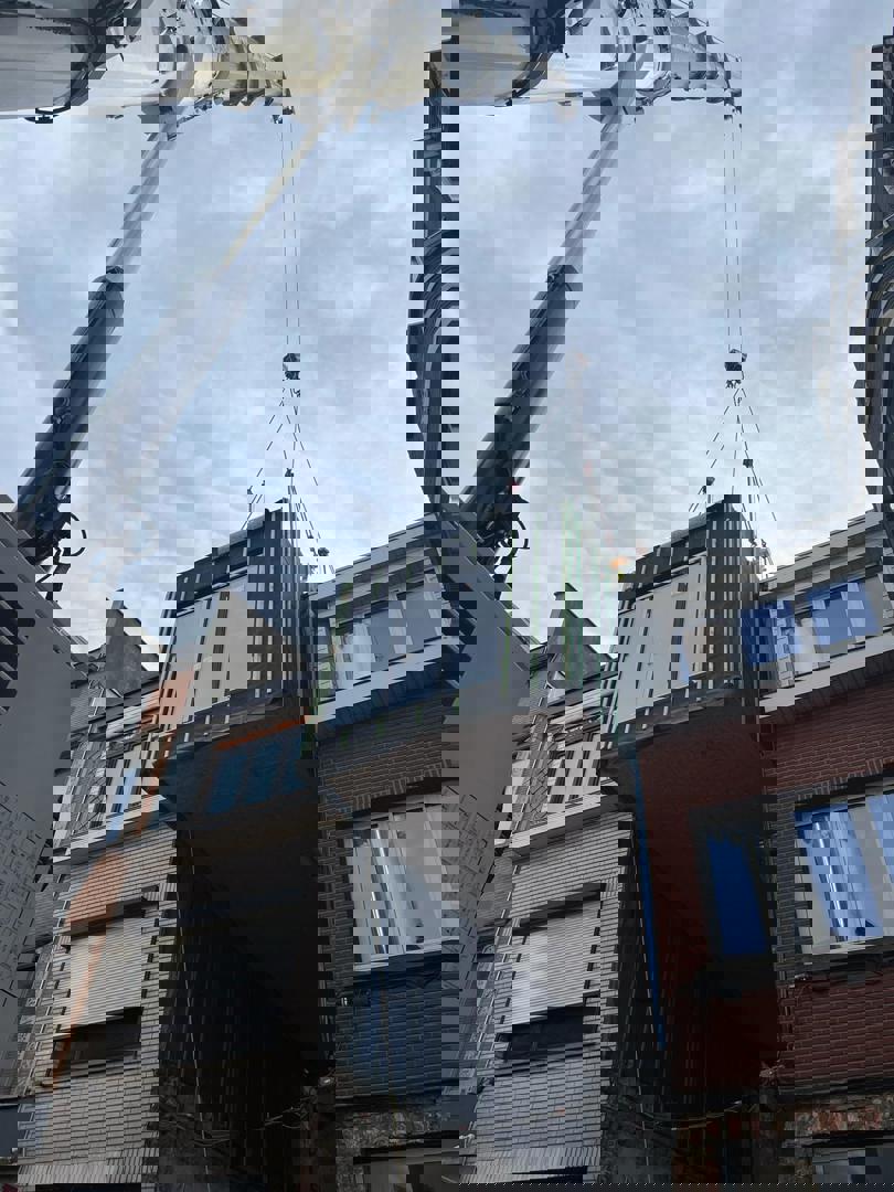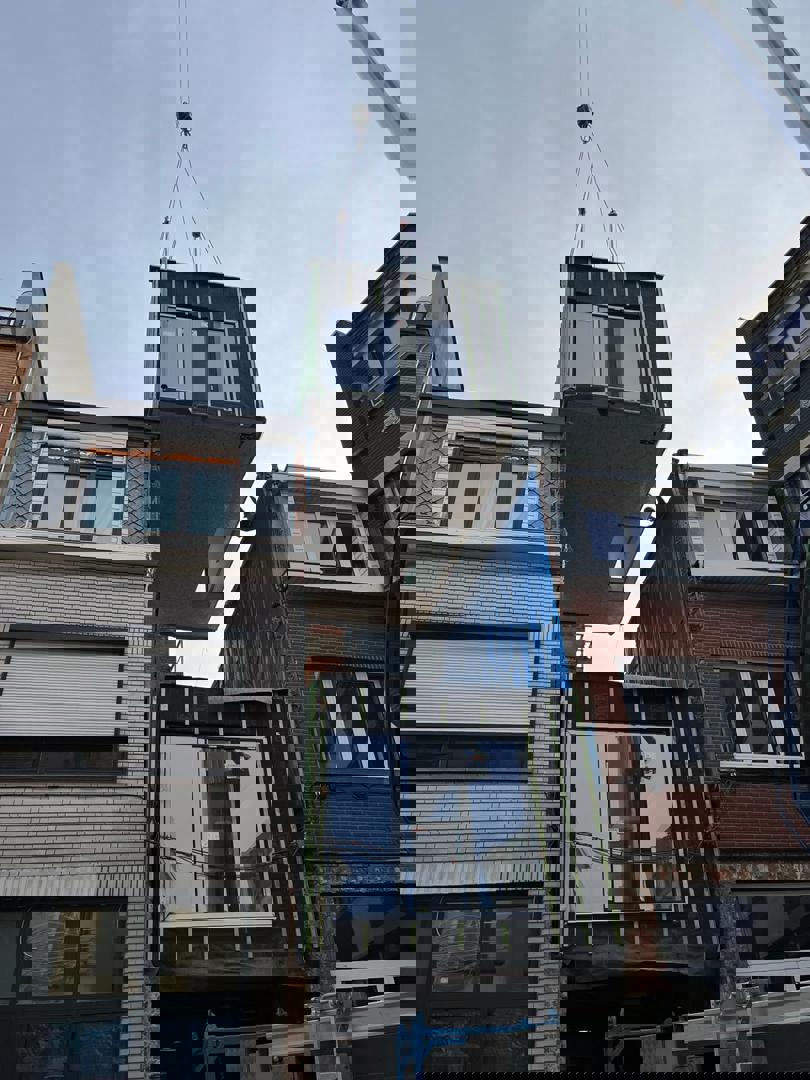 Un exemple d'optimisation des process et de travail neutre sur le plan climatique : voici le concept de construction modulaire et circulaire Mobble, conçu par LabLand vzw, un think tank gantois qui étudie les problèmes de logement comme la dégradation et l'inoccupation et explore de nouveaux concepts de construction et des formes de logement intelligentes. L'éponyme maison Mobble est la concrétisation de leurs recherches et expérimentations. Ces logements Mobble, qui sont construits en atelier à Eeklo, à l'exception de la finition, peuvent être installés tel quel, mais peuvent également être "insérés" entre deux maisons mitoyennes à l'aide d'une grue. Cela en fait également une solution idéale pour le remplacement (rapide) de maisons mitoyennes difficilement rénovables, voire même impossible à rénover. Aujourd'hui, on en retrouve un nouvel exemple à Anvers : après la réalisation de deux Mobbles à Gand (dont la première avait fait l'objet d'un article sur Circubuild, ndlr), une Mobble a été placée aujourd'hui dans la Lange Slachterijstraat, entre deux maisons mitoyennes existantes, au-dessus d'un garage et d'un hall qui ont été conservés après la démolition de l’ancienne maison dont ils faisaient partie.