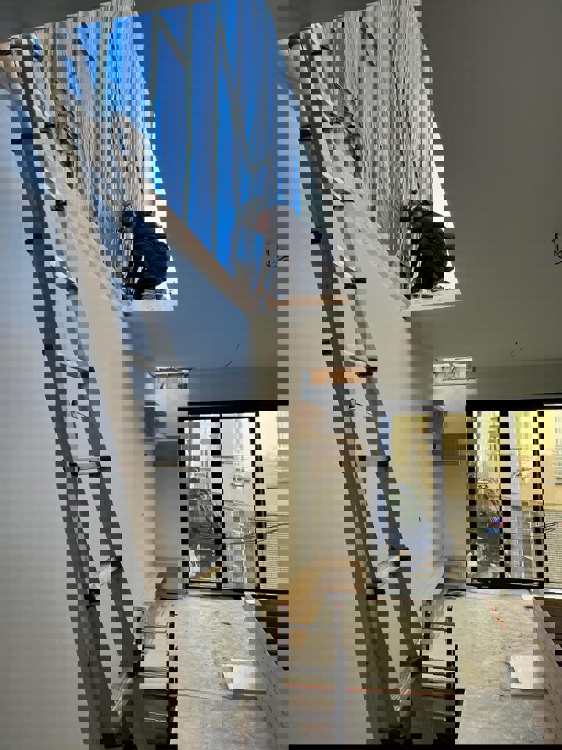 "Bien que nous partions chaque fois de modules existants, chaque maison slide-in est un projet unique et 100 % personnalisé", explique enfin l'architecte en charge du projet, Pieter Vandewalle, à propos du processus de conception. "En collaboration avec studiov2 et à l'aide des technologies numériques les plus récentes, le bâtiment existant a été virtuellement démoli, après quoi nous avons créé un double numérique du nouveau projet. L'ensemble du processus de développement et de production a ainsi pu avoir lieu alors que l'ancien bâtiment était toujours là. Pour cette maison, le rez-de-chaussée devait être conservé, avec un passage libre vers les étages supérieurs. Nous avons travaillé avec des poutres transversales en acier sur lesquelles la maison slide in, formée de deux modules, a été placée. Conformément aux règles d'urbanisme, la façade est recouverte de briques de parement (ou plaquettes), mais d'autres types de finition sont également possibles pour ce système de construction. Comme toutes les habitations que nous avons déjà construites avec Mobble, celle-ci est également équipée d'une pompe à chaleur et de panneaux solaires, ce qui la rend pratiquement neutre sur le plan énergétique, non seulement sur le plan des matériaux, mais aussi des techniques."