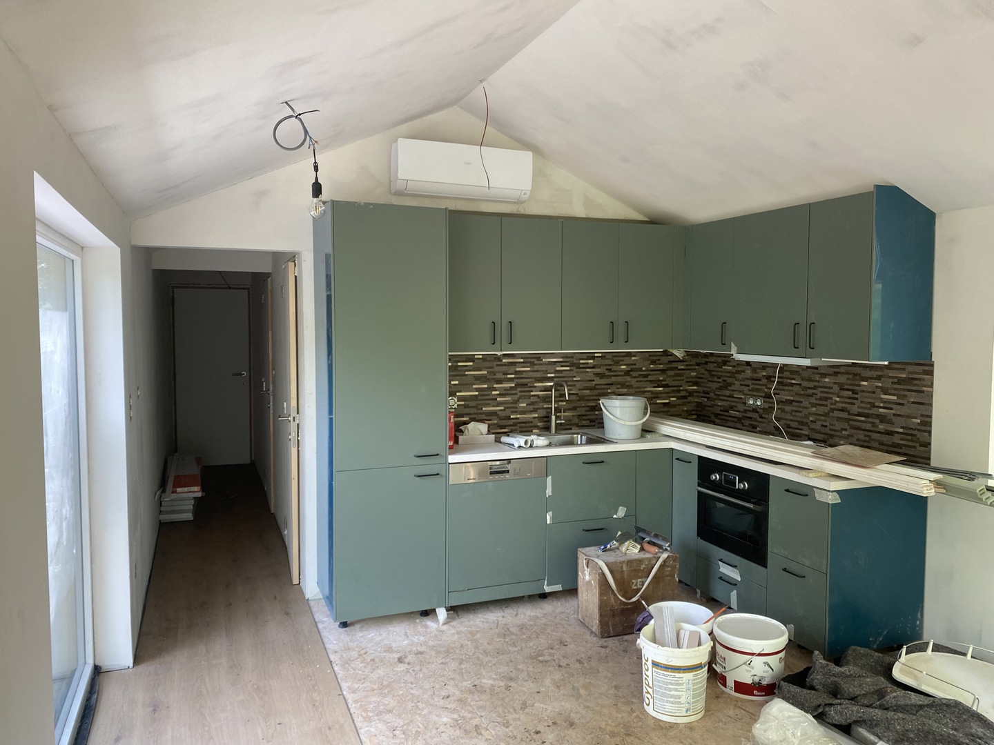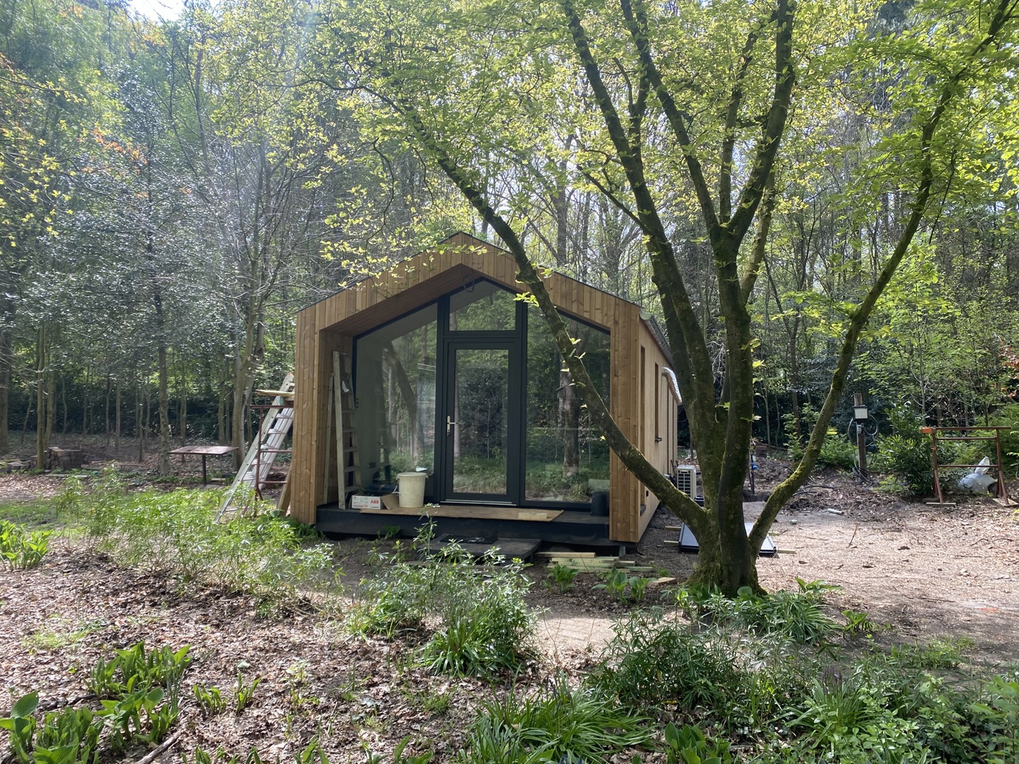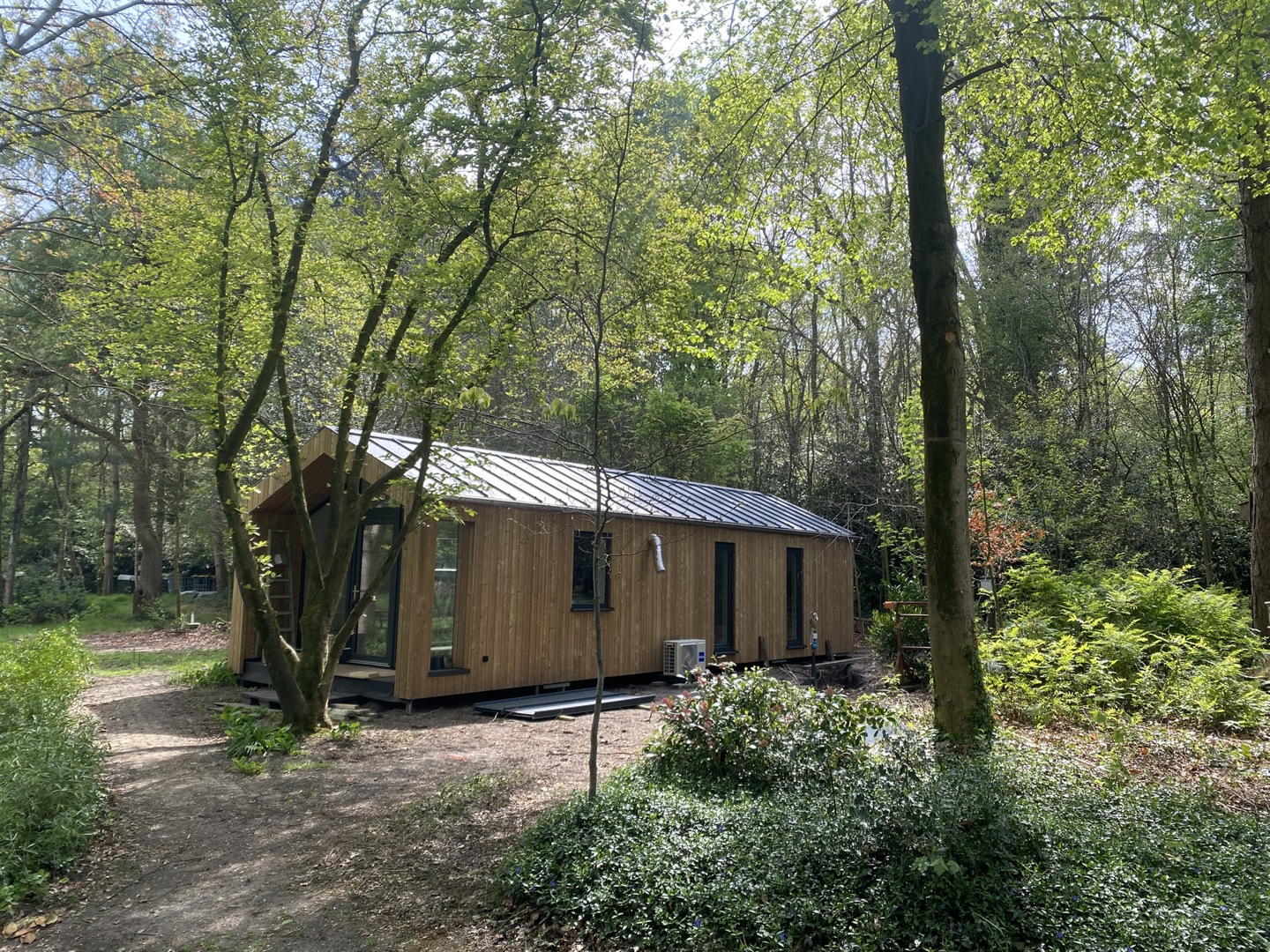 ZET Wonen a construit la maison de campagne pour le couple de retraités dans son propre atelier pendant environ quatre mois, ce qui correspond au délai habituel. Afin de faciliter le transport, la tiny house a été livrée en quatre modules sur le site de construction. Ceux-ci ont ensuite été assemblés sur place. Le sol n'a été posé qu'après l'installation, celui-ci s'étendant sur tous les modules. Les panneaux de toiture n'ont également été posés sur la tiny house qu'une fois celle-ci arrivée à destination, car certains d'entre eux s'étendent également sur deux modules. Comme toujours, les techniques ont été intégrées en atelier.