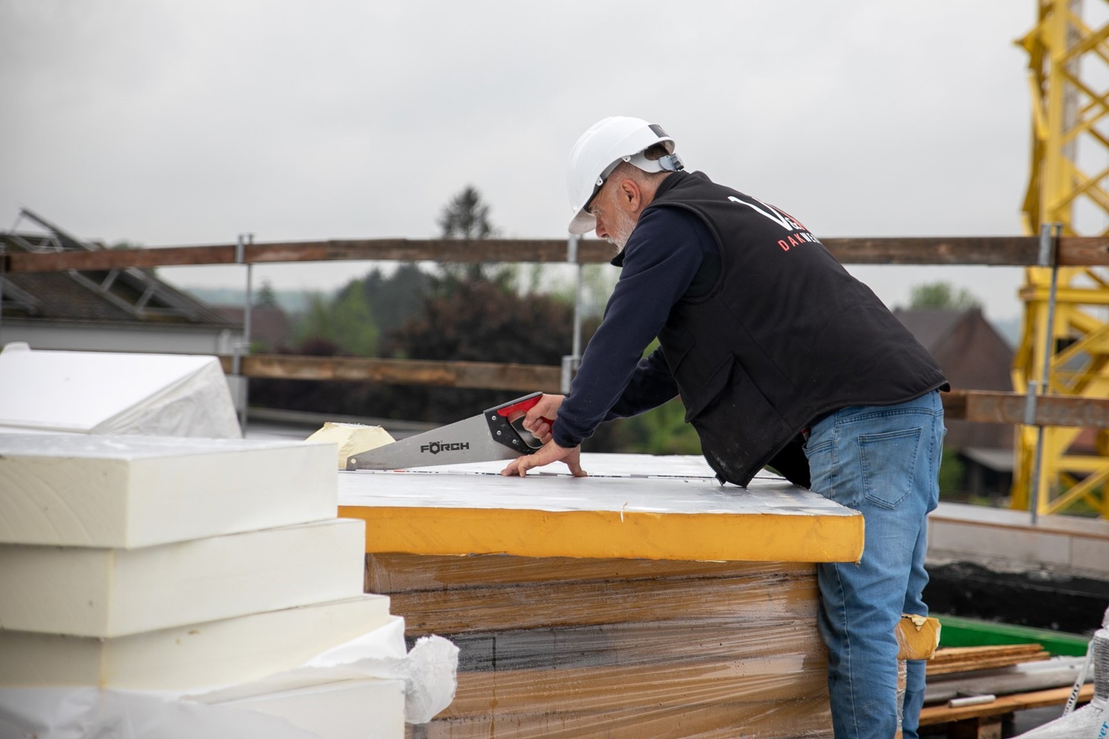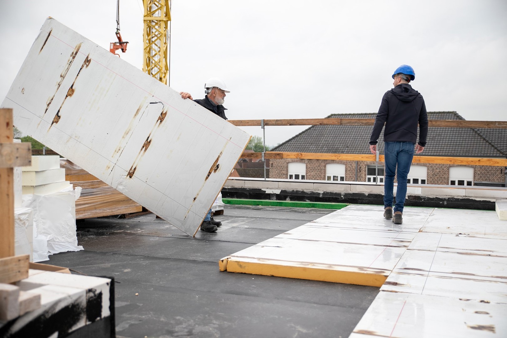 Entre-temps, d'autres toitures ont été construites avec le système de toiture plate amovible BossCover Circular System de CPE dans notre pays, notamment à Saint-Trond et à Kampenhout. Ce grossiste, fondé en 1988 par Tectum group, est spécialisé dans les produits pour toitures et façades. Mais dans le projet de Wellen, ce système a été combiné avec des plaques PUR récupérées qui étaient effectivement vouées à être incinérées, ce qui est une première pour un bâtiment scolaire. Le matériau isolant provenait d'un toit démoli d'un bâtiment de l'OVAM, à Malines. Elle y aura servi pendant 22 ans.