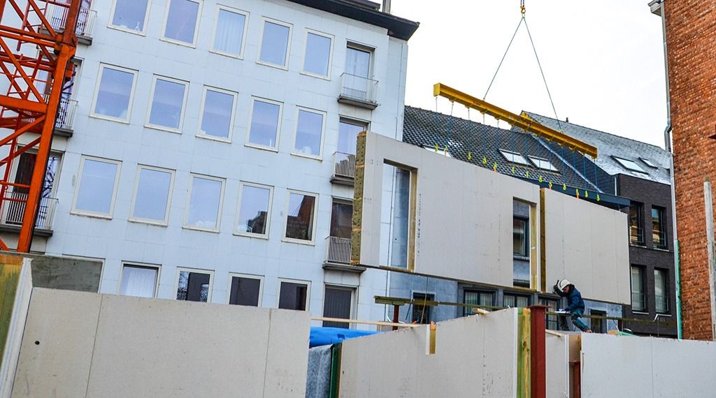 Les modules, d'une taille moyenne de 10 x 3,6 mètres, ont été transportés sur le chantier et placés à l’aide d’une grue. « En douze jours seulement, l'ensemble du bâtiment de cinq étages, y compris la toiture et les planchers préfabriqués était étanche à l’air et à l’eau », poursuit Bart Goossens. « Un exploit incroyable car, de façon traditionnelle, le processus de construction aurait pris facilement six à huit mois. De plus, Machiels Building Solutions a une nouvelle fois réalisé un exploit unique : c'était la première fois en Belgique qu'une construction à ossature bois préfabriquée, avec des façades ventilées parachevées par des plaquettes en briques était livrée sur chantier en Belgique ! »