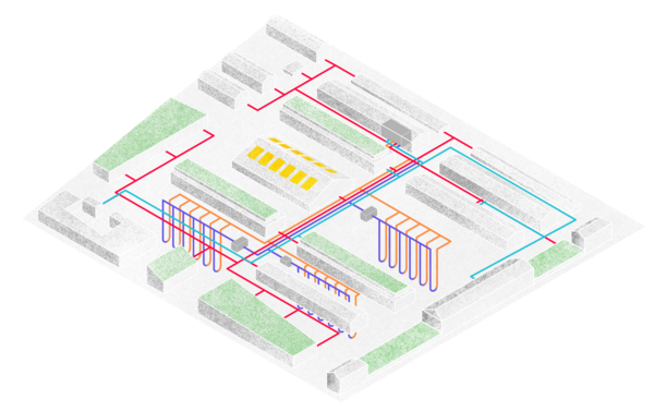Le futur réseau de chaleur de Usquare subviendra à la totalité des besoins en chaleur (et en refroidissement) des opérations immobilières développées sur le site et permettra de diminuer drastiquement la dépendance au gaz des bâtiments du site, et dès lors d’inscrire le site Usquare dans l’évolution des ambitions politiques en matière de décarbonation.