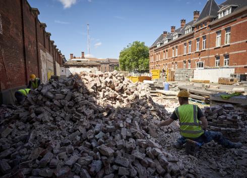 Usquare.brussels : la reconversion de l’ancienne caserne monte en régime et met l’accent sur la réutilisation de matériaux