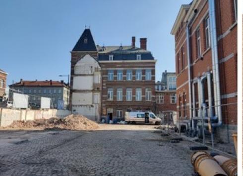 Annemie Schaus et Jan Danckaert soulignent que « les Bruxellois peuvent déjà constater l’évolution physique progressive du lieu et le début du désenclavement du site. Nous espérons qu’à mesure que les travaux avanceront, cela puisse contribuer à créer des liens entre les habitants et nos universités. Et nous nous réjouissons de disposer de nouveaux lieux de recherche dédiés aux thématiques urbaines et pensés pour accueillir et rapprocher les publics. L’association des bureaux d’architecture evr architecten, BC Architects, Callebaut Architecten et du bureau d’études VK Engineering, désignée par marché public, a développé un projet sur mesure pour les universités, alliant démarche contemporaine et mise en valeur du patrimoine. Le projet d’architecture pour cette réhabilitation, tant sur la disposition des lieux et des accès que sur le vocabulaire utilisé pour donner une nouvelle identité à ces bâtiments emblématiques, répond au souhait des universités de créer toujours plus de liens avec la ville ».