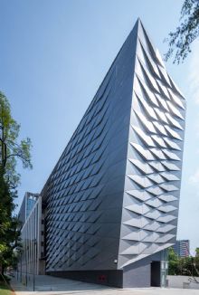 La façade du bâtiment de l'AICB attire non seulement beaucoup d'attention, mais elle est également extrêmement utile. Dans la région tropicale de Kuala Lumpur, il a tendance à pleuvoir abondamment, et les feuilles d'aluminium dévient naturellement la pluie. De cette façon, la façade est non seulement belle, mais aussi particulièrement fonctionnelle. Tout le monde y gagne.