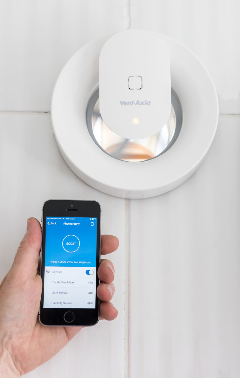 La deuxième innovation est le Vent-Axia Svara : un extracteur d’air intelligent adapté pour une extraction décentralisée dans des rénovations ou agrandissements répondant aux normes PEB. Le Svara est l’extracteur local le plus silencieux et extrait l’air automatiquement en fonction de la détection de l’humidité et de la détection de présence. Cet appareil est lancé avec une garantie de 5 ans, une Appli gratuite (Vent-Axia Connect), et est répertorié depuis début Février dans la base de données de produits PEB des Régions.