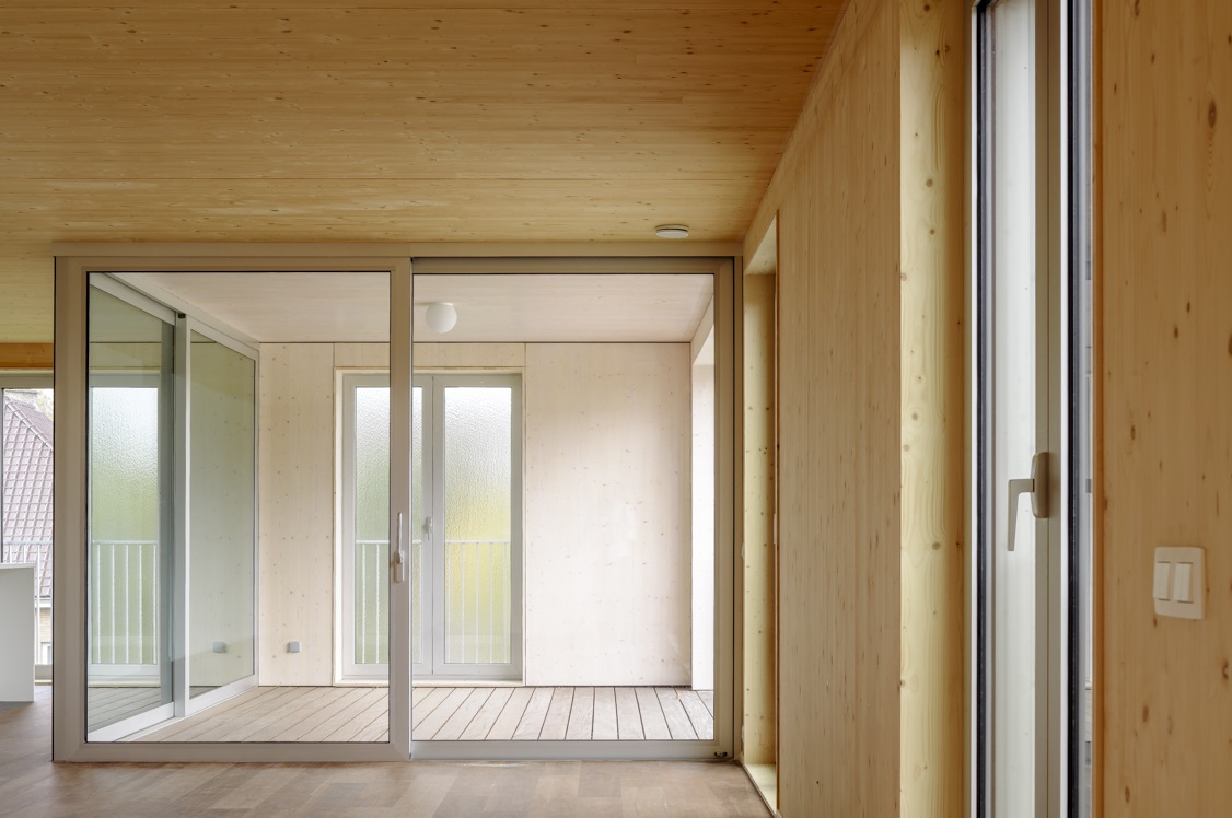 D'autre part, des plaques de CLT ont également été utilisées pour créer de grandes portées qui réduisent le nombre de murs porteurs en CLT. En conséquence, et grâce à l'utilisation limitée de plaques de plâtre pour les murs non porteurs, les appartements ont été aménagés de manière à pouvoir être facilement adaptés à de nouveaux besoins à l'avenir.