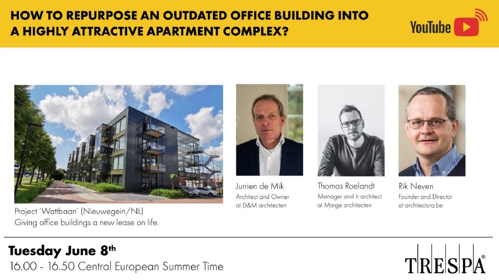 Le 8 juin prochain de 16h à 16h50, Trespa® et architectura.be vous invitent à retrouver les architectes Jurrien de Mik et Thomas Roelandts pour un webinaire exclusif sur un sujet très actuel.