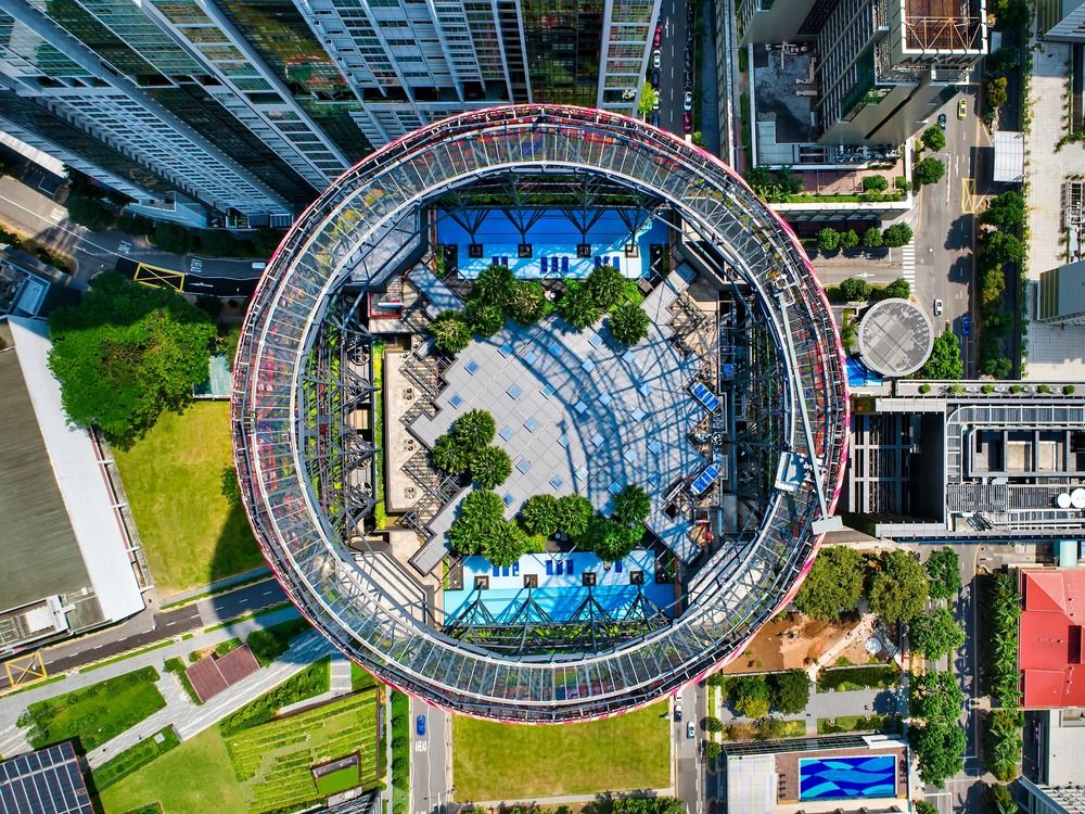 L'hôtel Oasia, situé dans le quartier d'affaires de Singapour, est en tous points un projet unique, redéfinissant ce que peut être un gratte-ciel en milieu tropical humide. À l'inverse des tours conventionnelles, hermétiques et climatisées, cet hôtel imaginé par le cabinet local de WOHA fait fusionner architecture et nature, par une impressionnante combinaison d'espaces intérieurs et extérieurs. Une tour pour ceux qui n'aiment pas les tours...