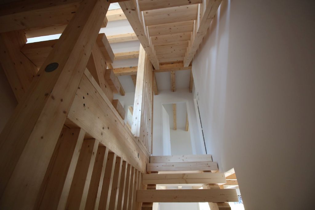 Grâce à la qualité esthétique des poteaux et des poutres, on peut également opter pour laisser la structure visible en tout ou en partie. L'épaisseur de la structure murale peut être fortement réduite en isolant également entre les colonnes, ce qui permet d'obtenir de plus grands espaces de vie.