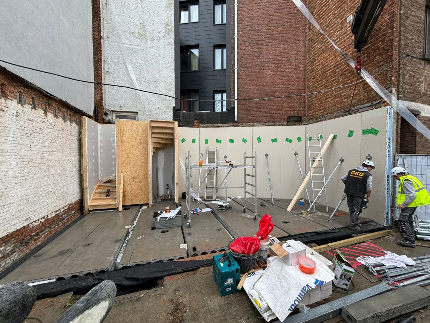 "Une prouesse d'ingénierie. C'est ainsi que Wim Pieters, CEO de CIRCL, décrit le projet de rénovation de la Patronaatstraat. "Sur un terrain très compact et de forme irrégulière, nous avons réalisé une maison de 140 m² avec seulement 1,5 cm de jeu, et donc sans aucune perte d'espace habitable. Cela n'a rien d'évident pour une construction expérimentale et n'a été possible que grâce à un travail minutieux de numérisation, tant chez Yally que chez nous. Le site étant proche d'une école, nous avons délibérément choisi de réaliser le gros œuvre pendant les vacances de Pâques, soit en une quinzaine de jours".
