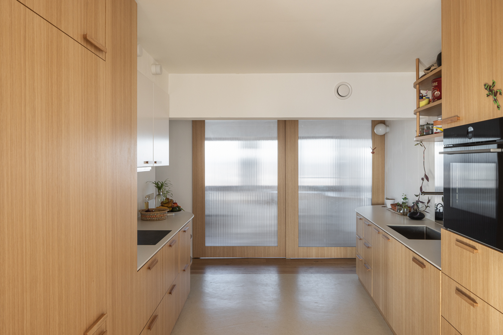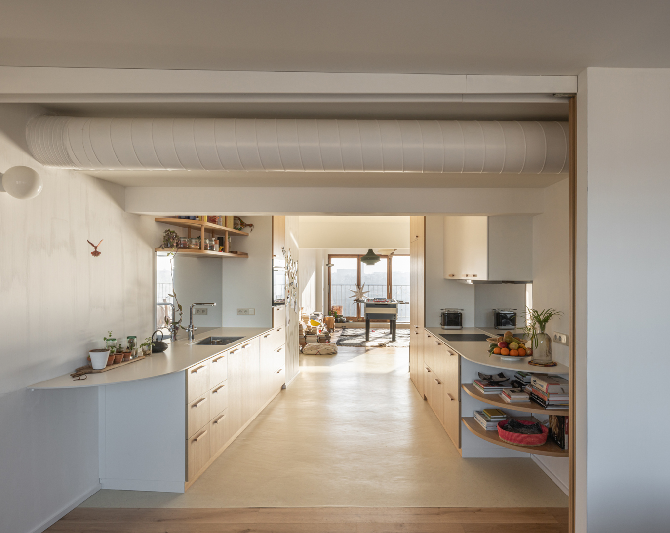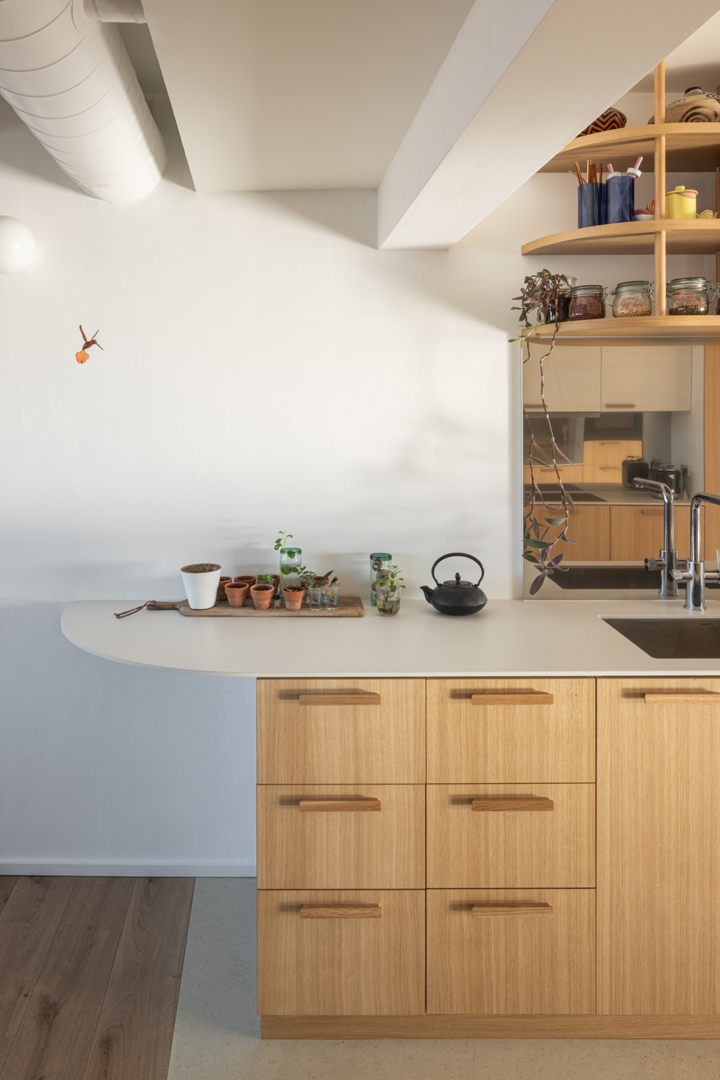 Le projet contribue au bien-être des habitants en transformant un appartement initialement monofonctionnel en un espace ouvert, adapté à une manière de vivre contemporaine. Les circulations traversantes maximisent la lumière naturelle et favorisent les interactions entre les différentes zones de vie. L’utilisation de matériaux naturels, tels que le bois et l’isolation à base de mycélium, crée une atmosphère saine et chaleureuse, tout en offrant confort et qualité intérieure. Cette approche concilie fonctionnalité, lumière et bien-être, tout en respectant l’identité architecturale de la tour Brusilia.