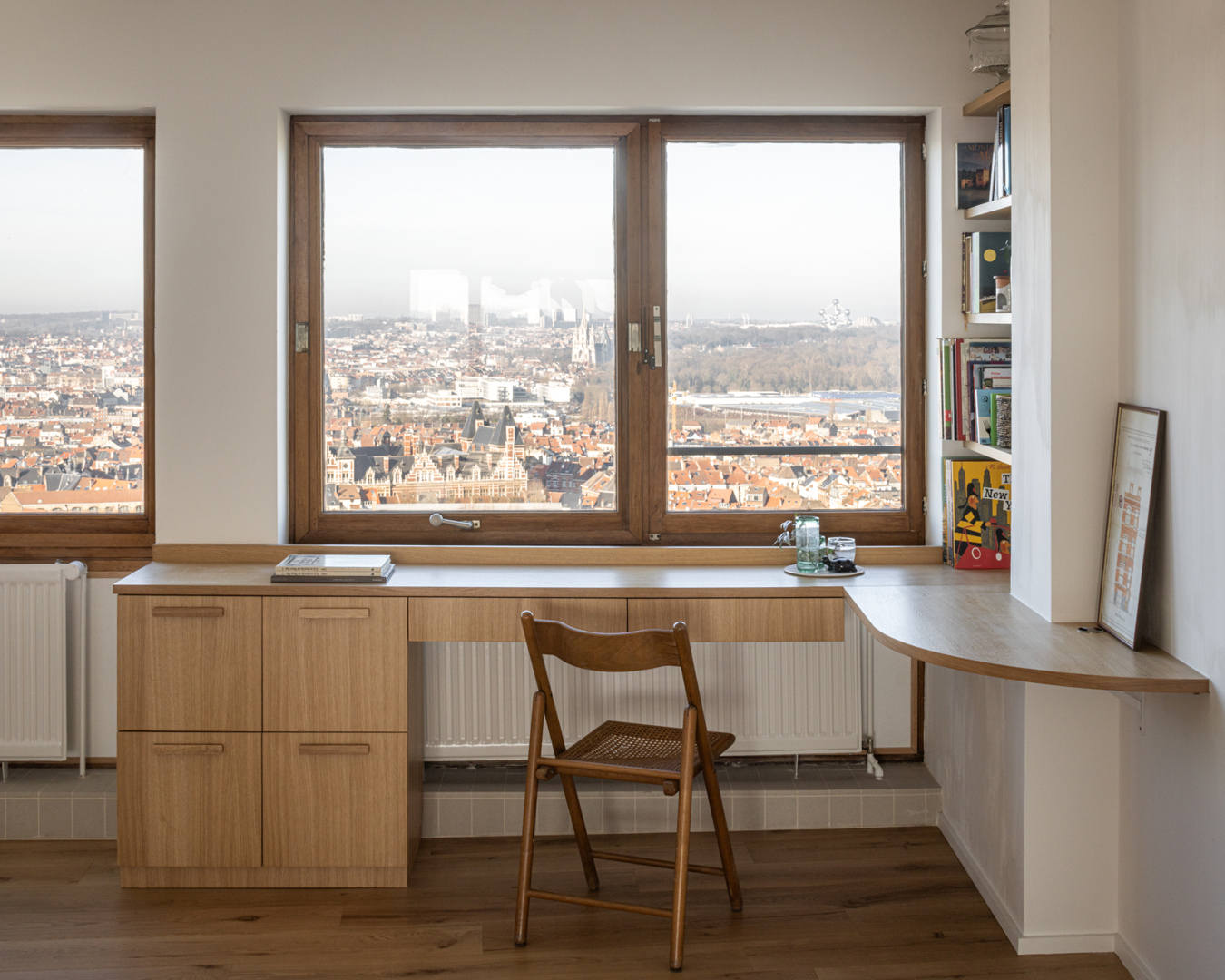 Le projet consiste en la rénovation d’un appartement de 120 m² dans la tour Brusilia, tout en exploitant un espace inutilisé d’environ 30 m². Cette surface, initialement prévue pour une extension jamais réalisée, est accessible depuis la salle attenante des appartements de coin. La mission de conception vise à repenser la distribution intérieure, optimiser la lumière et créer un logement fonctionnel et confortable, intégrant ce surplus de surface. Le projet transforme ainsi une zone jusque-là perdue en un espace habitable pleinement exploité, respectant la structure existante et l’identité architecturale de la tour.
