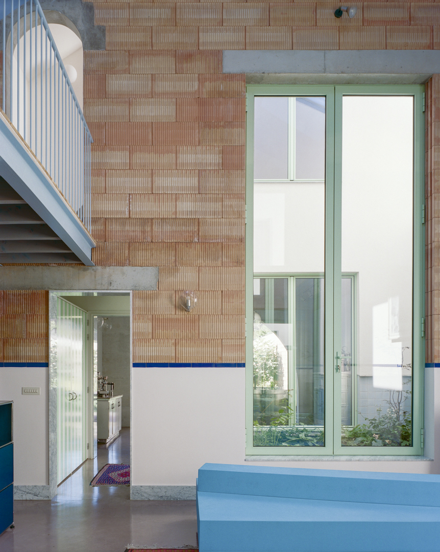 Un site difficile d’accès, entouré de mitoyens, exigeait une grande clarté constructive et spatiale. Nous avons introduit des patios comme moteurs du projet, apportant lumière naturelle et ventilation profonde. Les contraintes logistiques ont encouragé une approche circulaire ambitieuse : matériaux issus de la démolition et filières de seconde main intégrés à la structure et aux finitions. Ce qui apparaissait comme une contrainte est devenu un outil de conception, générant précision, sobriété et cohérence.