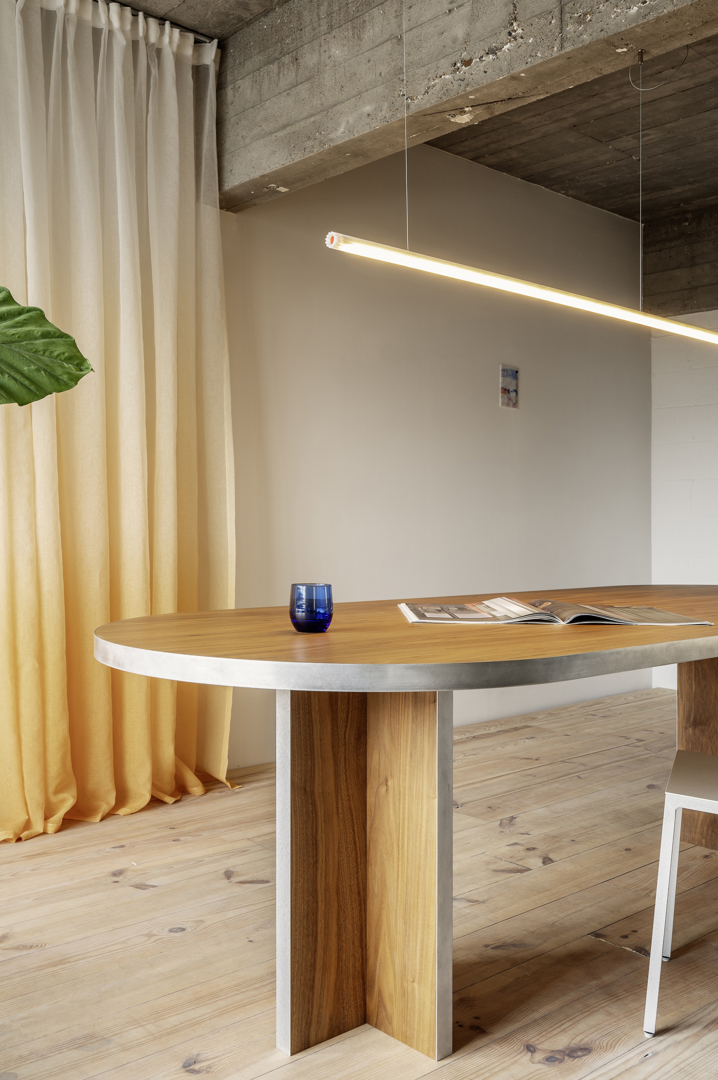 C'est durable ! En errant dans le bâtiment avec une mentalité circulaire, un design créatif est né, misant sur l'esthétique de la réutilisation, la démontabilité et les faibles coûts. Tout d'abord, nous avons conservé ce qui existait : 4 types de menuiseries extérieures, différents revêtements muraux et beaucoup de béton. Nous enrichissons avec des matériaux trouvés tels que le verre fumé, le noyer, le marbre, le plancher... et égayons l'ensemble avec de nouveaux accents tels que les chaises et les rideaux. Avec notre histoire, nous inspirons d'autres personnes, de sorte qu'une plus grande partie de l'usine abandonnée est actuellement habitée et entretenue en attendant de futures rénovations. Ainsi, nous continuons à construire durablement l'histoire collective de ce bâtiment emblématique.