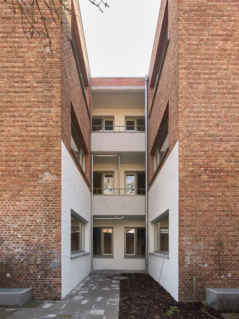 Le projet concerne la réaffectation d'un immeuble d'habitation de 1950 à Borgerhout en un projet de logements d'urgence flexibles. La rénovation s'inscrit dans l'appel du gouvernement flamand pour réaliser rapidement des logements temporaires de qualité pour les personnes qui doivent quitter leur domicile de manière inattendue. La disposition existante de six petits studios ne répondait plus à la demande actuelle, où des familles plus nombreuses sont souvent à la recherche de logements. Une nouvelle configuration d'habitation a donc été développée dans l'enveloppe du bâtiment existant, comprenant deux appartements et deux studios. Grâce à deux nouveaux escaliers intérieurs, les unités d'habitation peuvent être temporairement reliées pour former de plus grands duplex, permettant ainsi d'accueillir différentes configurations familiales.