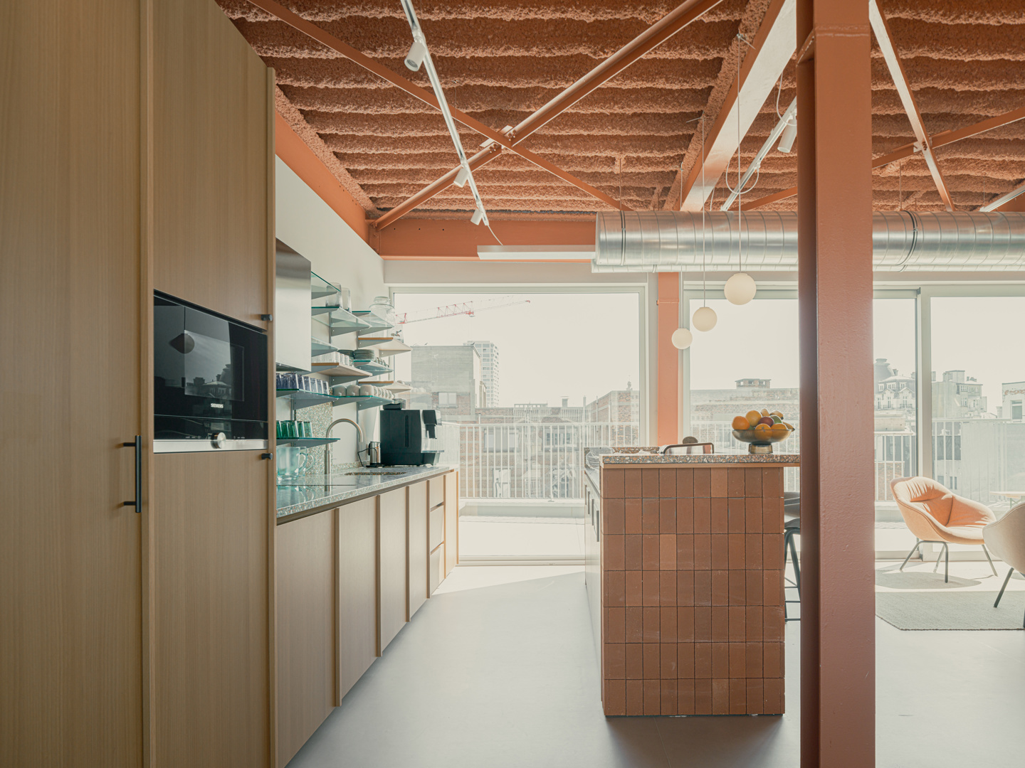 Après l’ouverture, les retours ont montré que davantage de télétravailleurs revenaient au bureau. Celui-ci devient un véritable lieu de rencontre pour voir et croiser ses collègues. Les espaces centraux ouverts, autour des bureaux, sont aménagés de façon informelle avec des postes flexibles, des machines à café et des fonctions de soutien. On travaille au calme en périphérie avec beaucoup de lumière naturelle, tandis que le centre favorise les rencontres, réunions et la circulation. En adoptant l’hospitalité comme cadre de conception, le projet répond aux besoins de bien-être et de connexion et démontre que la transformation peut générer une architecture pertinente à valeur sociale et écologique.