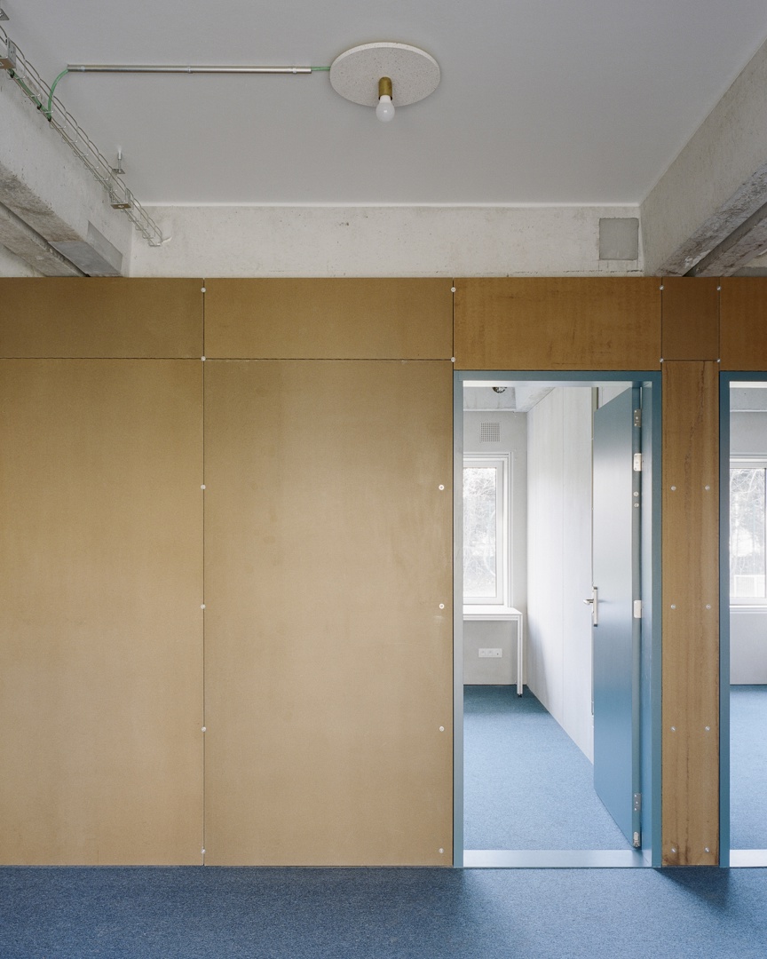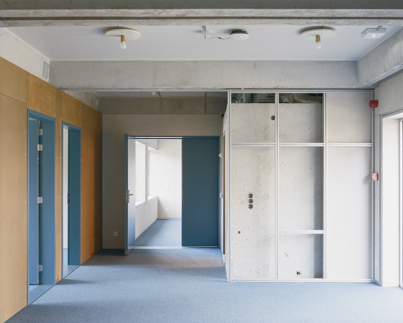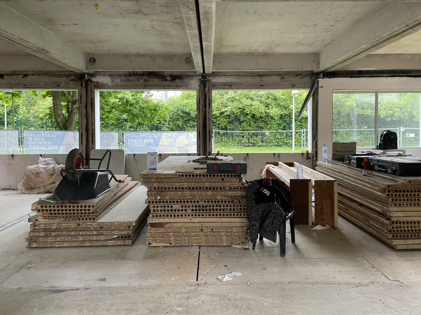 Plutôt qu’un projet conçu pour une commande spécifique, cette étude de rénovation est transposable et applicable à d’autres bâtiments de l’après-guerre. Nous nous appuyons sur un « casco » de base résilient, adaptée aux besoins fondamentaux de tout programme. Les qualités de l’état « as found », telles que l’inertie thermique et la modularité, sont pleinement exploitées et complétées par un revêtement en biomatériaux. Des couches réversibles peuvent être ajoutées selon les besoins fonctionnels. La structure modulaire permet l’utilisation de kits de construction composés de composants standardisés et interchangeables, assemblés comme un Meccano. Il en résulte une banque de matériaux générique et évolutive, modulable selon les exigences fonctionnelles et de confort.