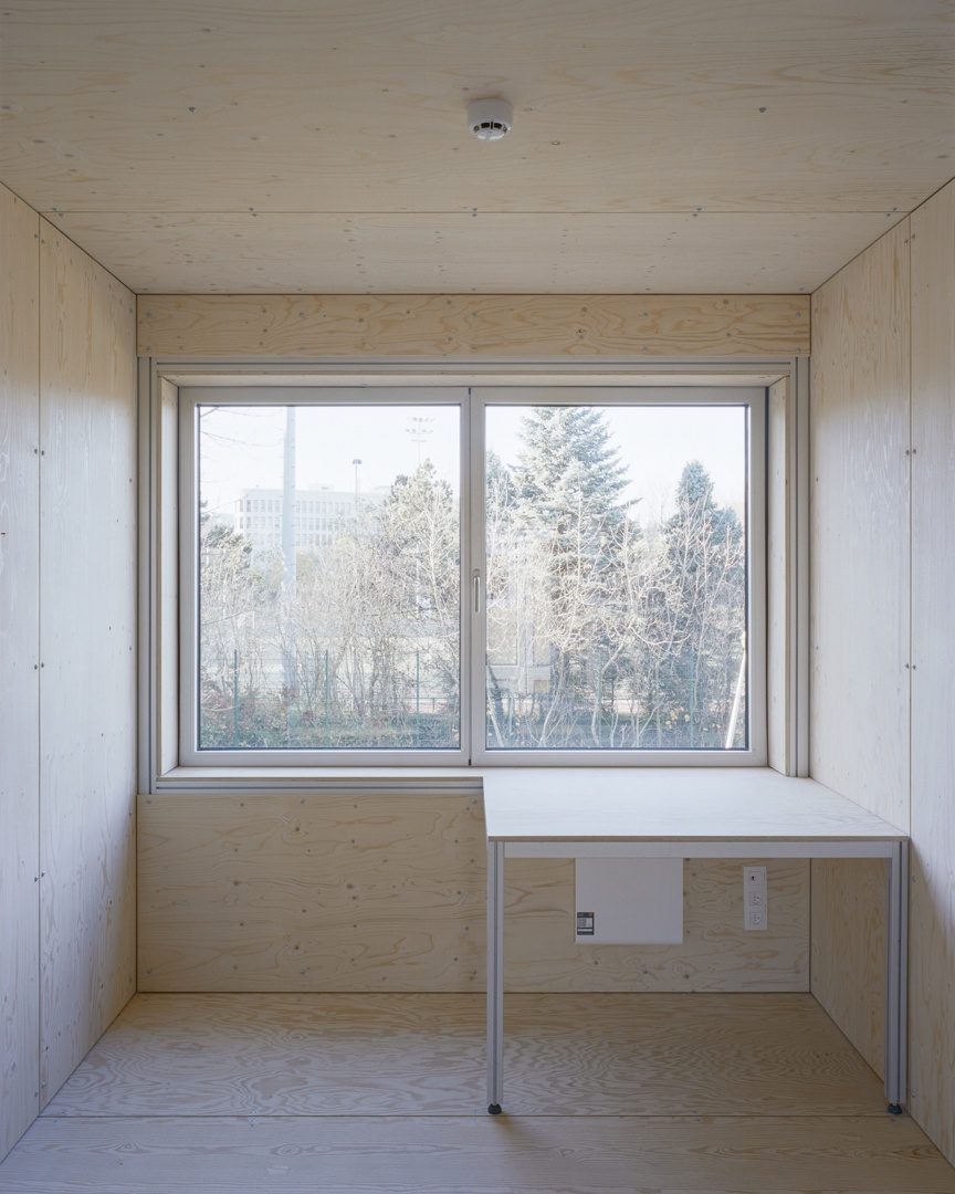 La rénovation accompagne la transition vers un campus durable. Les modules constituent les éléments d’un réseau plus vaste intégrant services sociaux, énergie, gestion de l’eau, espaces verts et mobilité douce. La durabilité est abordée à travers 4 thèmes : patrimoine, énergie, circularité et économie. Nous comparons les stratégies selon impact environnemental, démontabilité, apport de matériaux circulaires, coût global, réactivité,... Le projet se concentre sur la conservation de la structure en béton et des unités sanitaires, ainsi que sur la réutilisation des matériaux, in situ (panneaux en bois, éléments en béton, carrelage) et ex situ (moquette, isolation, éclairage, sanitaires, cuisines). L’image du projet est définie par le montage réversible et la patine des matériaux réutilisés.