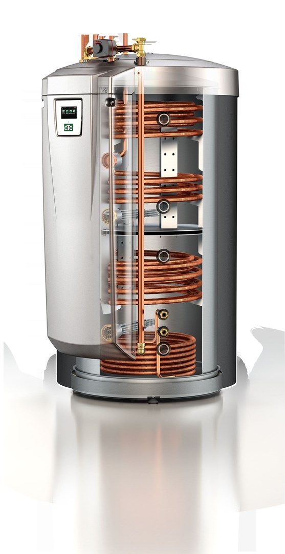 La CTC EcoZenith i555Pro est un réservoir énergétique tout-en-un avancé et une unité de contrôle unique pour les systèmes de chauffage. Avec une capacité de 600 litres, il peut stocker et distribuer la chaleur de manière efficace. Il est compatible avec les pompes à chaleur, l’énergie solaire, les chaudières à gaz et à granulés. Grâce à son système de régulation intelligent intégré, il optimise l’efficacité énergétique et permet de combiner plusieurs sources de chaleur. Le chauffe-eau intégré garantit un approvisionnement constant en eau chaude. Son écran tactile couleur et la possibilité de commande à distance via CTC Connect+ rendent son utilisation particulièrement conviviale. Avec ses nombreuses options de raccordement et une distribution efficace de l’énergie, l’EcoZenith i555Pro est idéal pour des solutions de chauffage durables dans les habitations exigeant un grand confort sanitaire.